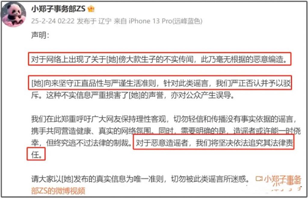 雖然鄭爽很久不露面,已經被封殺了。可她的團隊依然在維護正面形象,哪怕是之前網絡上有關於她傍大款生子的傳聞,都立馬站出來闢謠了。