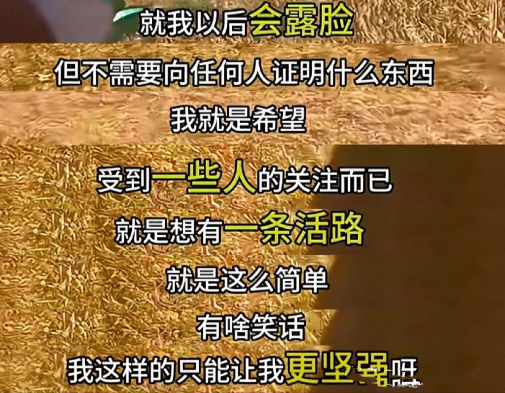 拍影子的時候就說自己以後會露臉,只是希望受到一些人關注,想要一條活路,也不怕被人笑話。她說的那麼卑微,和片酬208w的時候判若兩人。