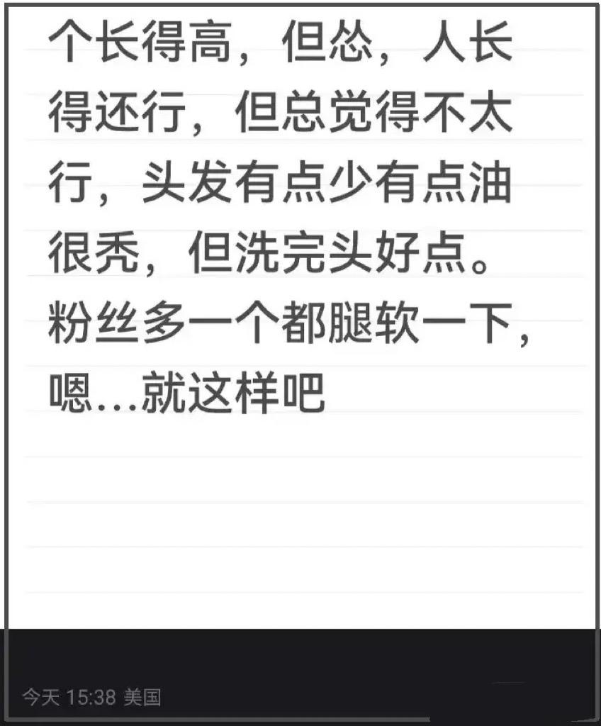 還是鄭爽自己在評論區發言,說:個子很高、但慫。長得還行,總覺得不太行。頭髮少有點油很禿,這一頓描述誰能想象到時當初的楚雨蕁呢?