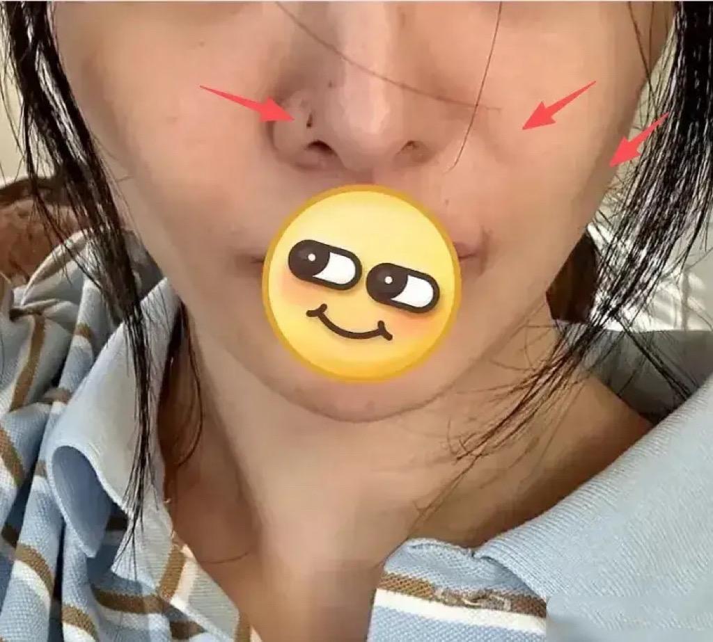 鄭爽曾親口承認,自己嘴角有疤。是因爲去美容院做脫毛的時候留下的,而這半張臉的照片、已經變了樣的臉型,只能通過嘴角疤痕來辨認了。