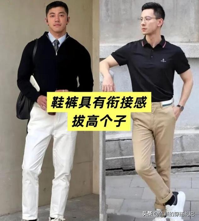男生在穿褲子的時候需要注意下細節,比如褲腳和鞋口別留太大空隙,不然會割裂腿型,顯腿短,如果穿運動鞋、板鞋,褲腳可以稍微收一點,露 1 釐米腳踝更利落,穿皮鞋、靴子的話,褲腳剛好搭在鞋口上,別堆褶子,將褲子和鞋子完美的銜接起來之後,能夠更好的幫助你拉長腿部線條,讓腿部看起來超級長!