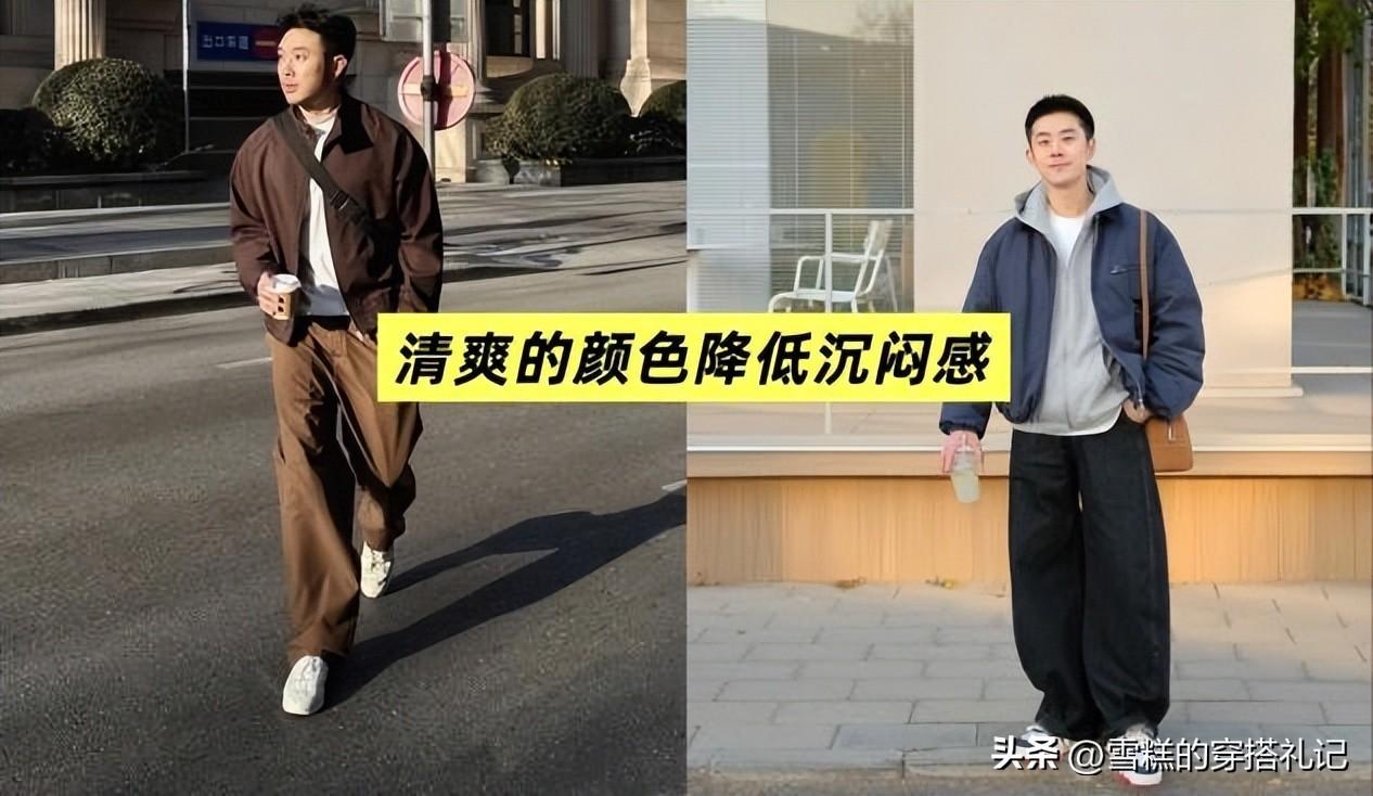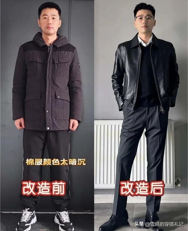 90%的男性絕對穿過這樣的搭配,出鏡率簡直太高了,但是這種暗沉的顏色的棉服,搭配上寬鬆的版型,無疑會加劇上半身的膨脹感,讓本身就比較胖的身材更加厚重,看起來一點都不高級大氣,關鍵這樣的造型也很容易陷入老氣的尷尬中,在搭配上同樣寬鬆的衛褲之後,上半身和下半身都是一樣的寬,視覺上簡直太顯胖了!而且整體的風格也比較休閒,打扮顯得非常普通,甚至有些邋遢。