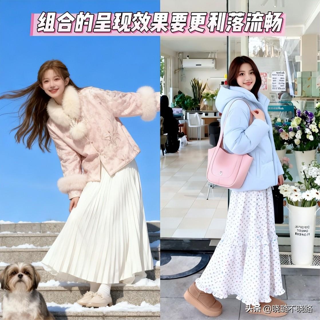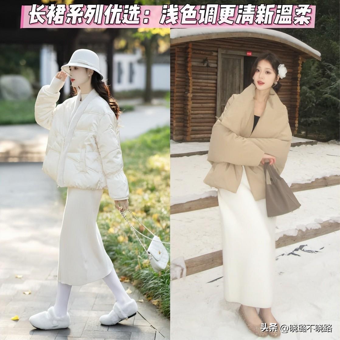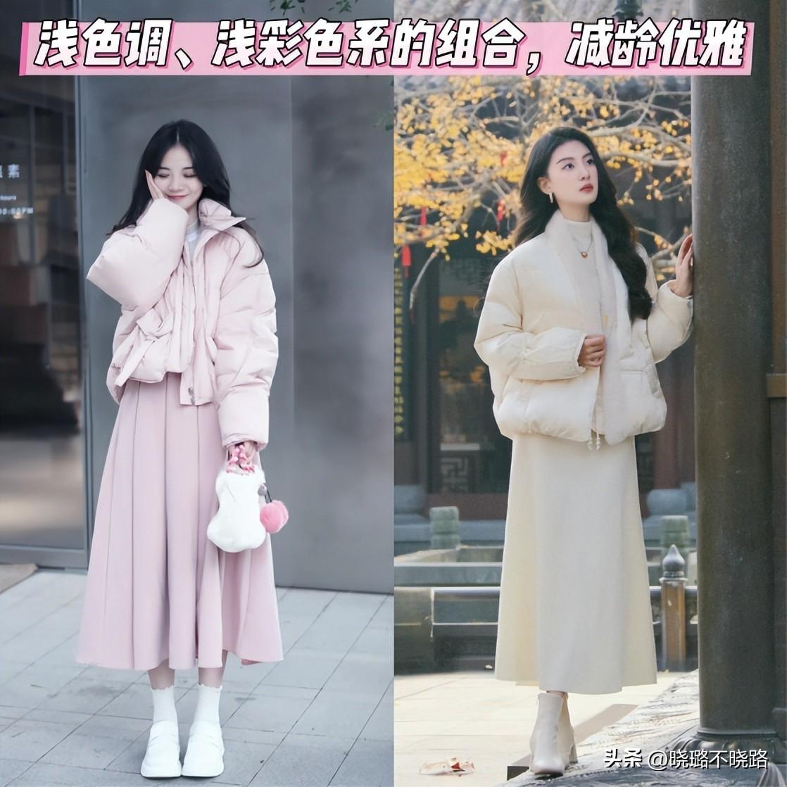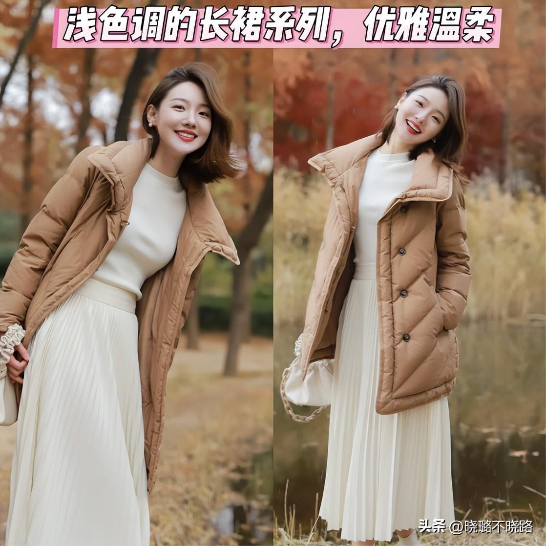 ㈡ 羽絨服+長裙的組合搭配,好看有氣質