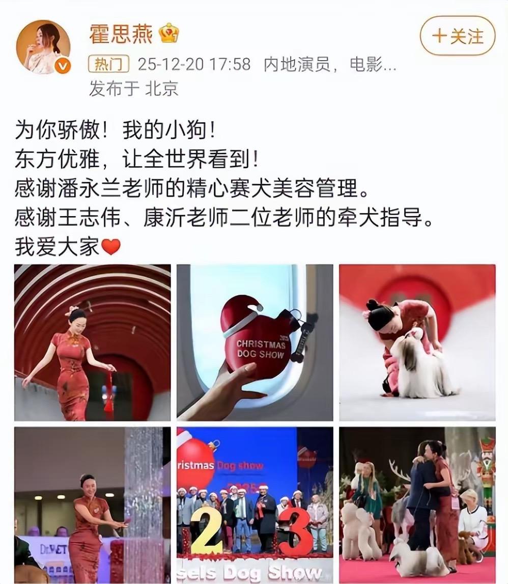 和杜江結婚生子後,霍思燕逐漸淡出娛樂圈,過起了養貓逗狗的日子。她可不是普通的打發時間,她經常帶狗狗參加犬展。