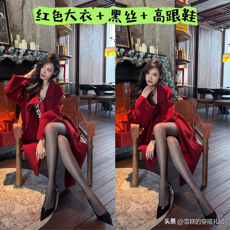 ➊ 熱烈的紅色大衣+黑絲,結合高跟鞋