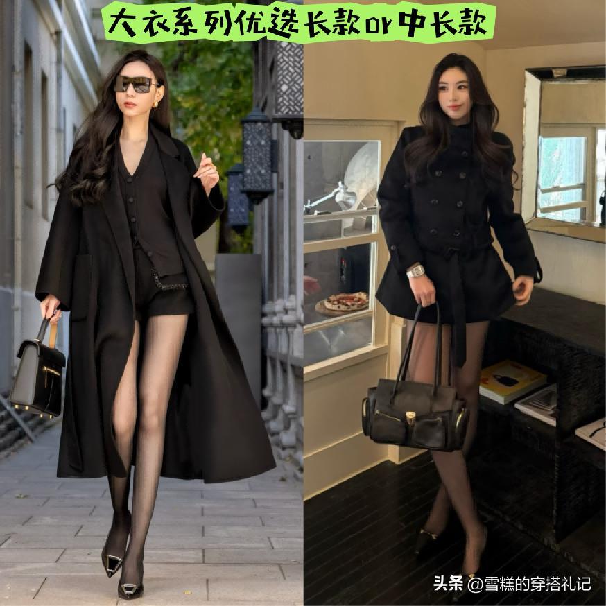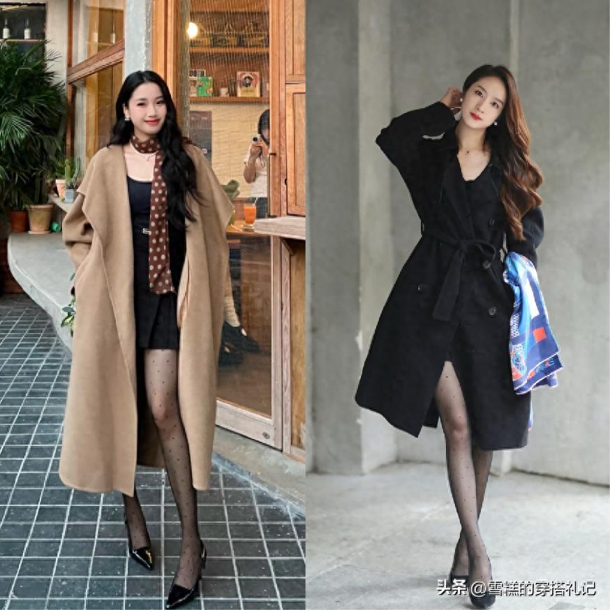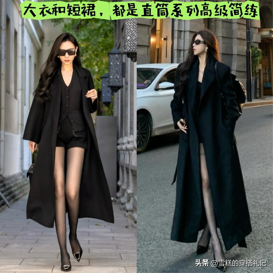 ⑴ 搭配直筒設計的大衣+黑絲,顯瘦還利落