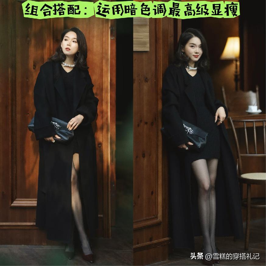 而且其實以上這樣的組合搭配,在運用色系的時候,還是要以暗色調爲主,展現出來的纖細度以及視覺上的顯瘦效果纔是一絕。同時像黑色以及深灰色調這樣的組合搭配,能夠將沉穩得體以及高級利落的氣質狀態再次進行強調。