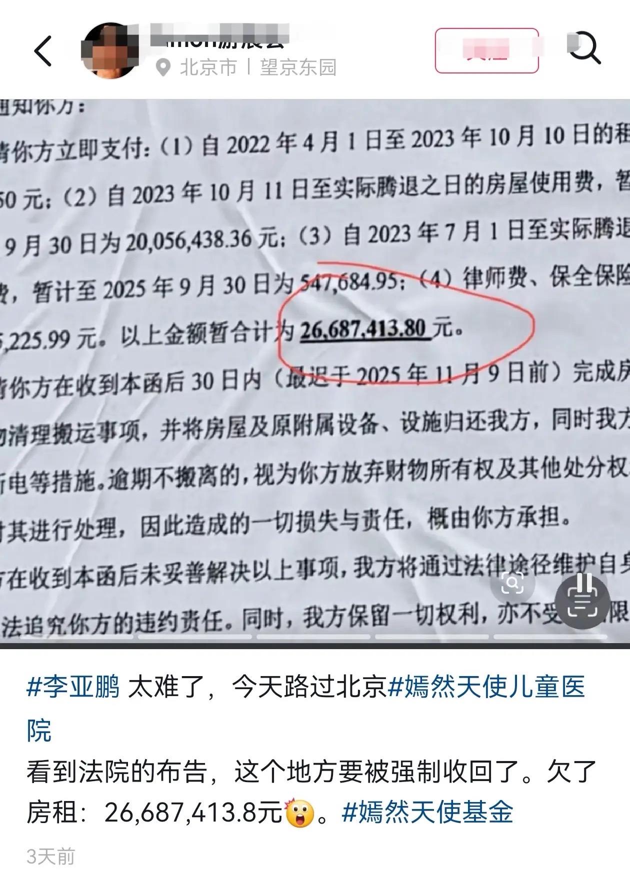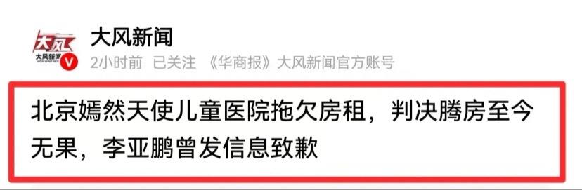 李亞鵬又被催債,嫣然醫院欠租2668萬被強制騰空,網友喊王菲出手