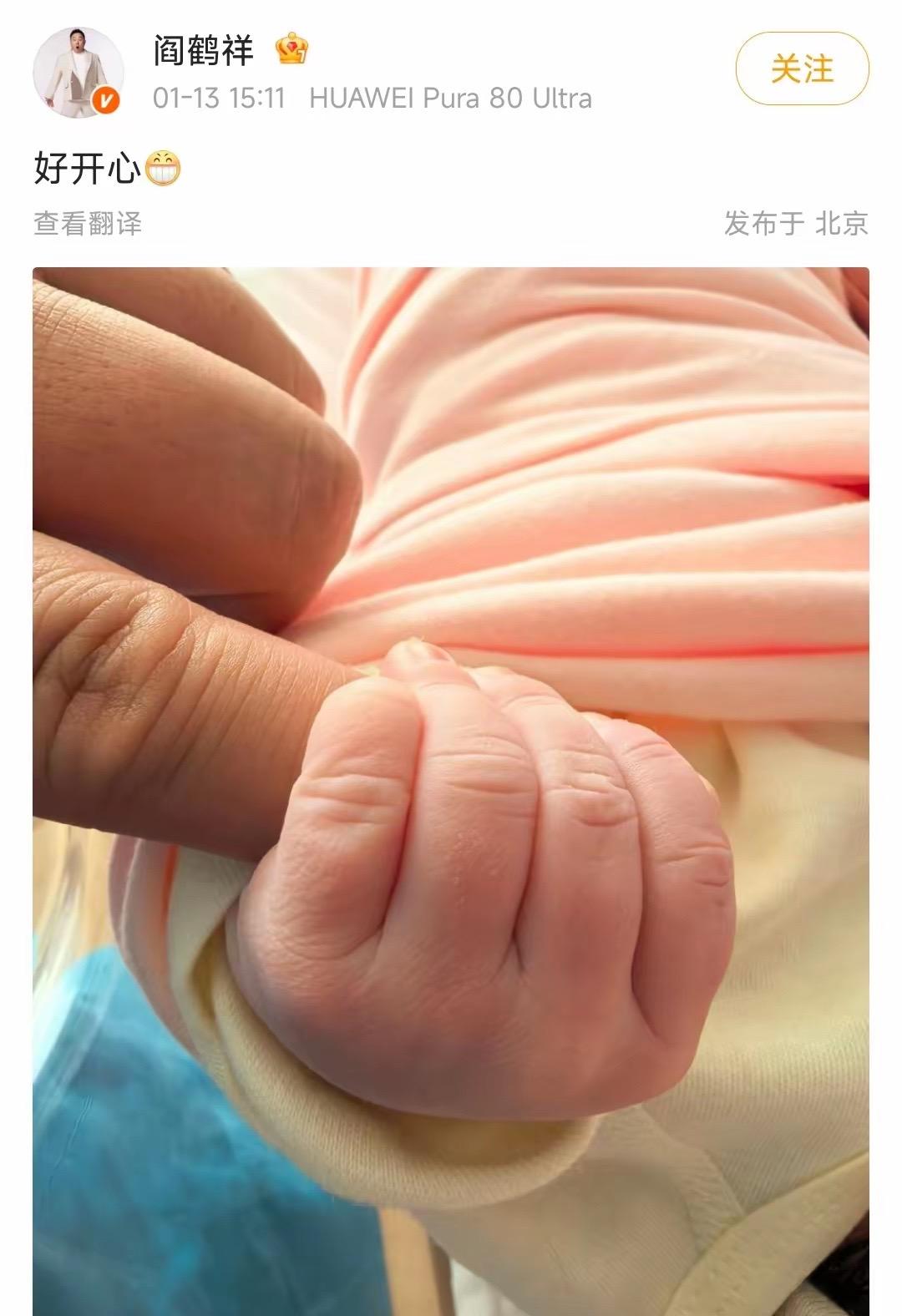 1月13日,娛樂圈又傳喜訊。44歲的閻鶴祥喜當爹,迎來了屬於自己的小寶貝。