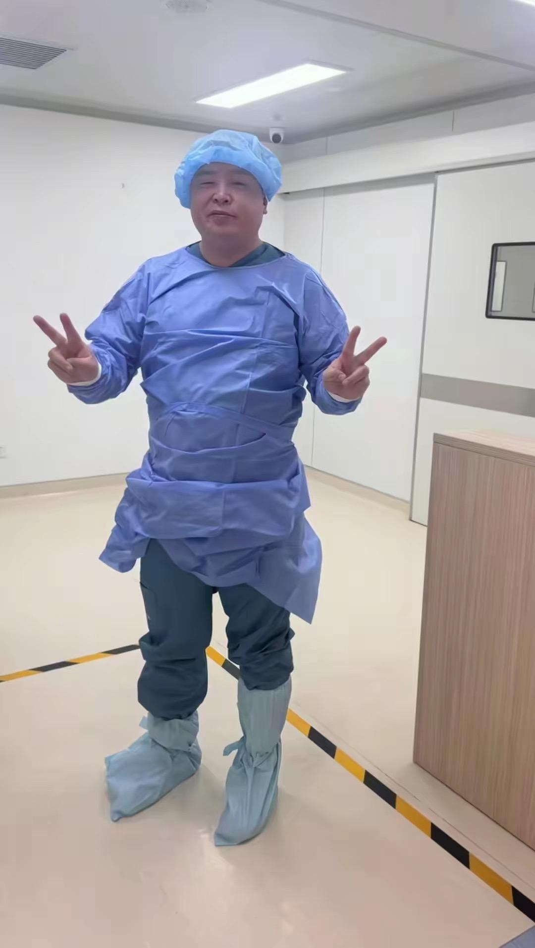 妻子生產的過程,閻鶴祥一直都陪在身邊。他穿着防護服、帶着腳套、頭罩,這個造型有點奇奇怪怪的,不過爲了能陪着老婆捱過最痛苦的時刻,這些都不重要了。