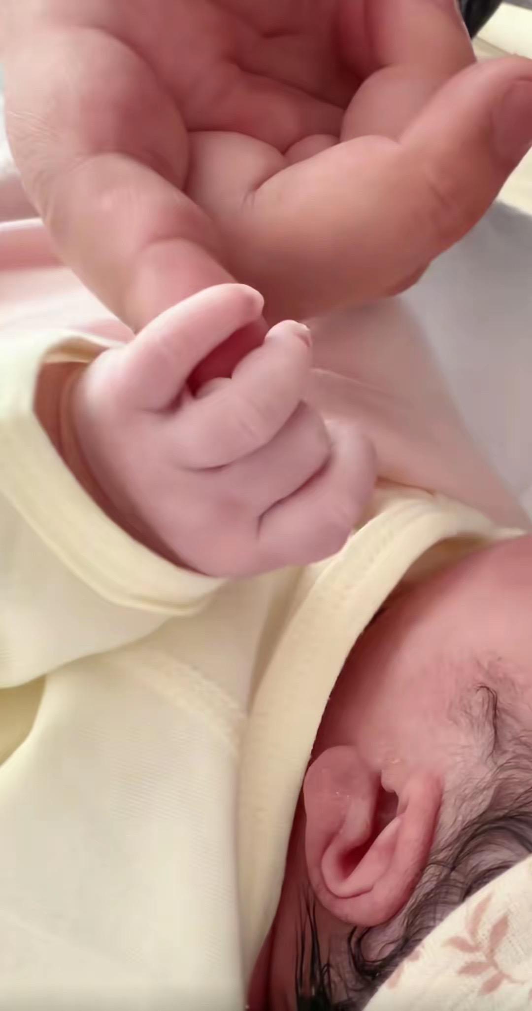 大手牽小手的畫面真暖,在閻鶴祥曬出來的照片中,看到小寶貝是大大的元寶耳,皮膚粉粉嫩嫩的,安靜的睡着了,孩子一臉福相。