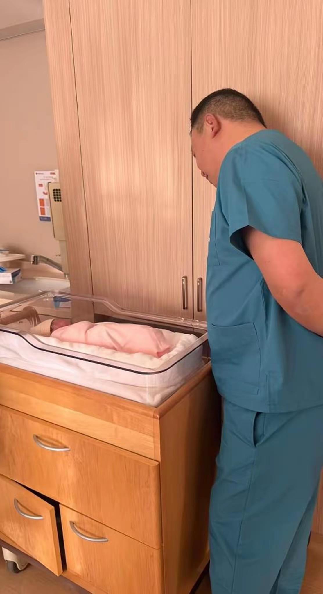 閻鶴祥就這麼安靜的看着襁褓中的孩子,小寶貝用的是粉色包被。雖然閻鶴祥沒有透露孩子性別,但不少網友都猜測和睦家生產、女孩子就是用紅色寶貝。