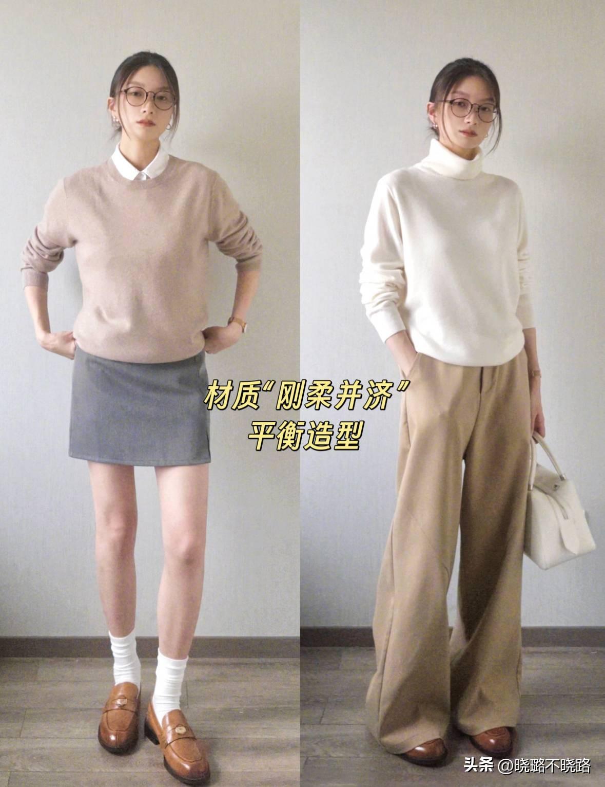 若是高領款式的羊絨衫,就需要藉助直筒西裝闊腿褲、皮質樂福鞋、利落的金屬首飾,讓自己的氣場立馬up up!
