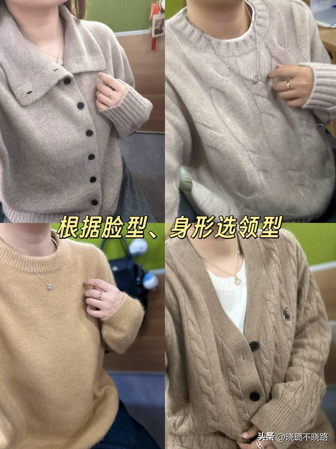 經典的圓領,恰好可以露出頸部線條,適合各種身材和臉型,單穿疊穿都很得體;V領更顯瘦,對於圓臉和短脖子星人更友好;立領或者堆堆領,能夠翻下來穿,造型感較強,可以打造個性搭配。