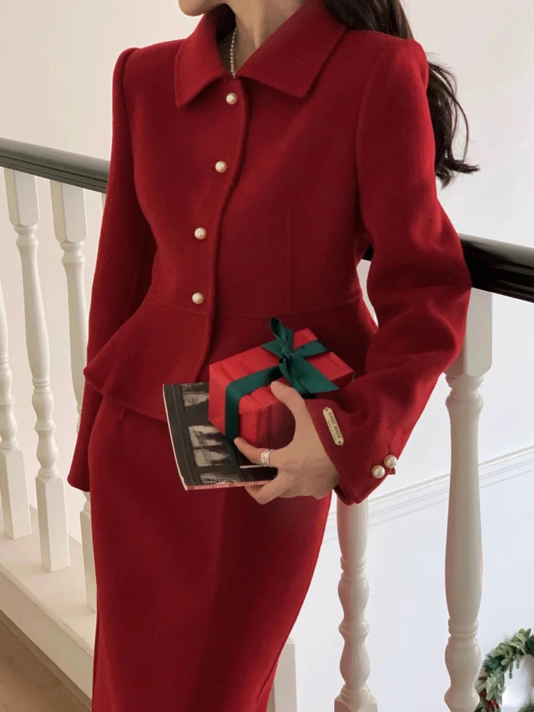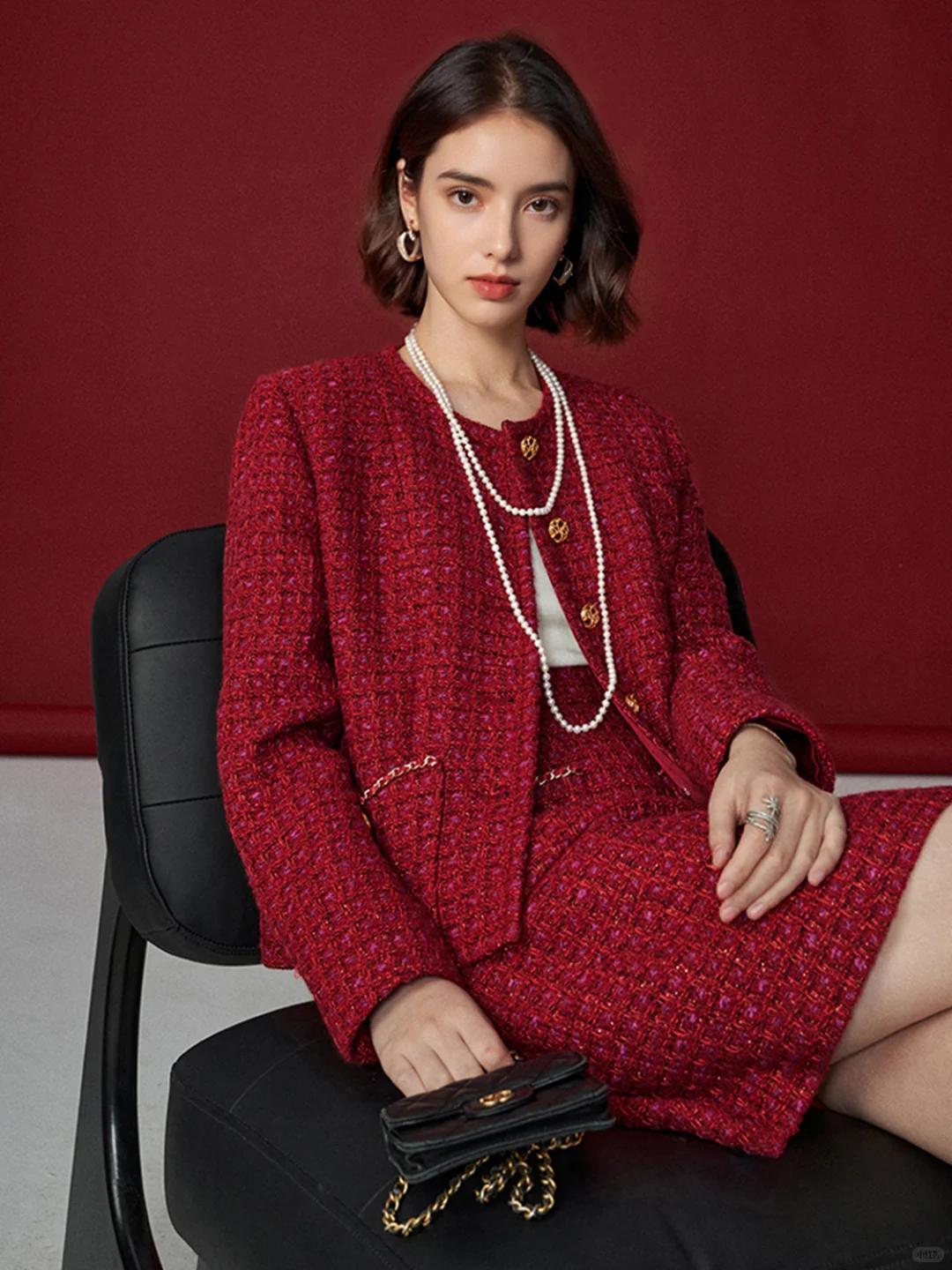 紅色小香風套裝簡直是精緻女孩的心頭好。