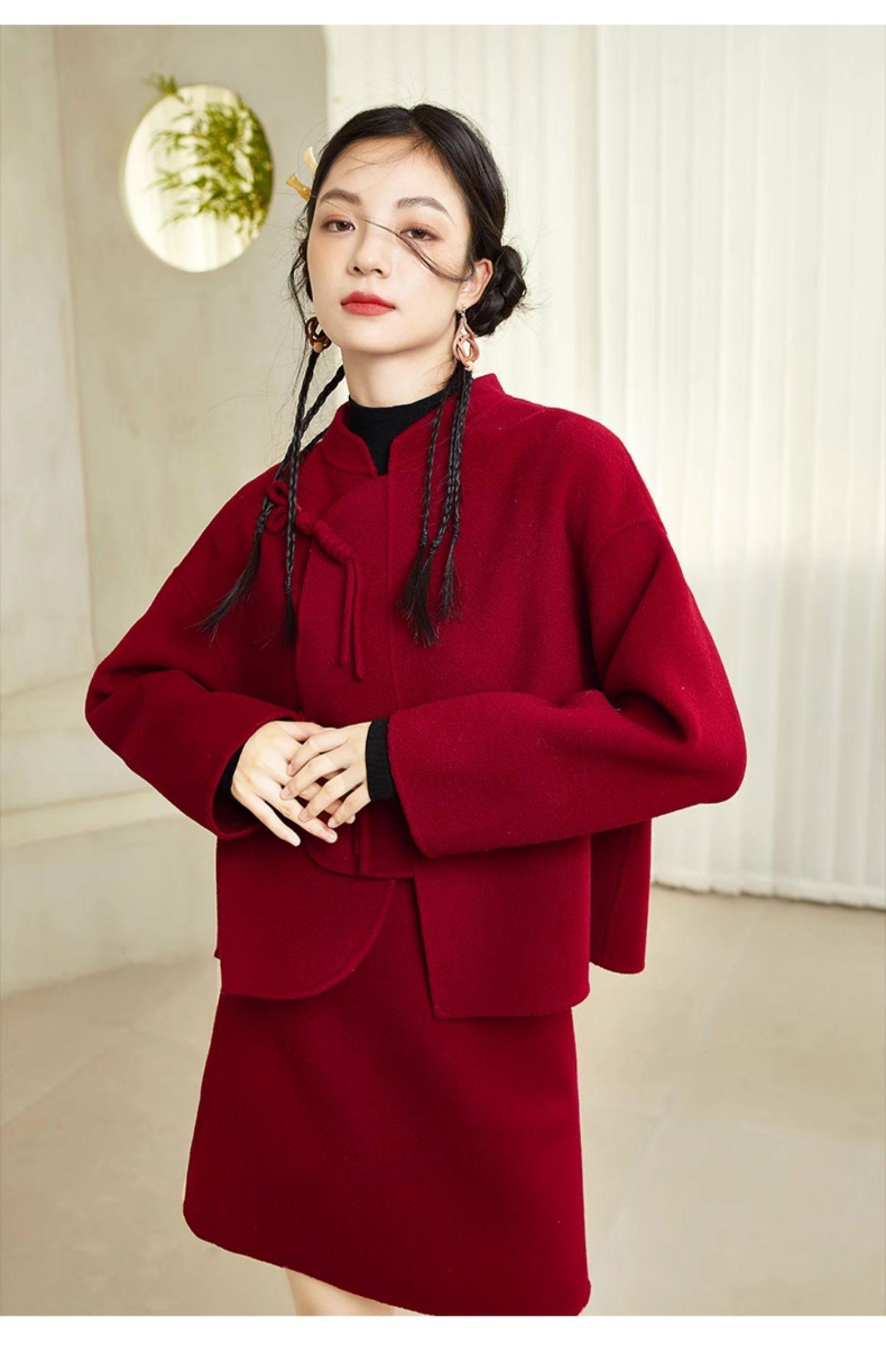 五、紅色新中式外套,古典與現代的交融