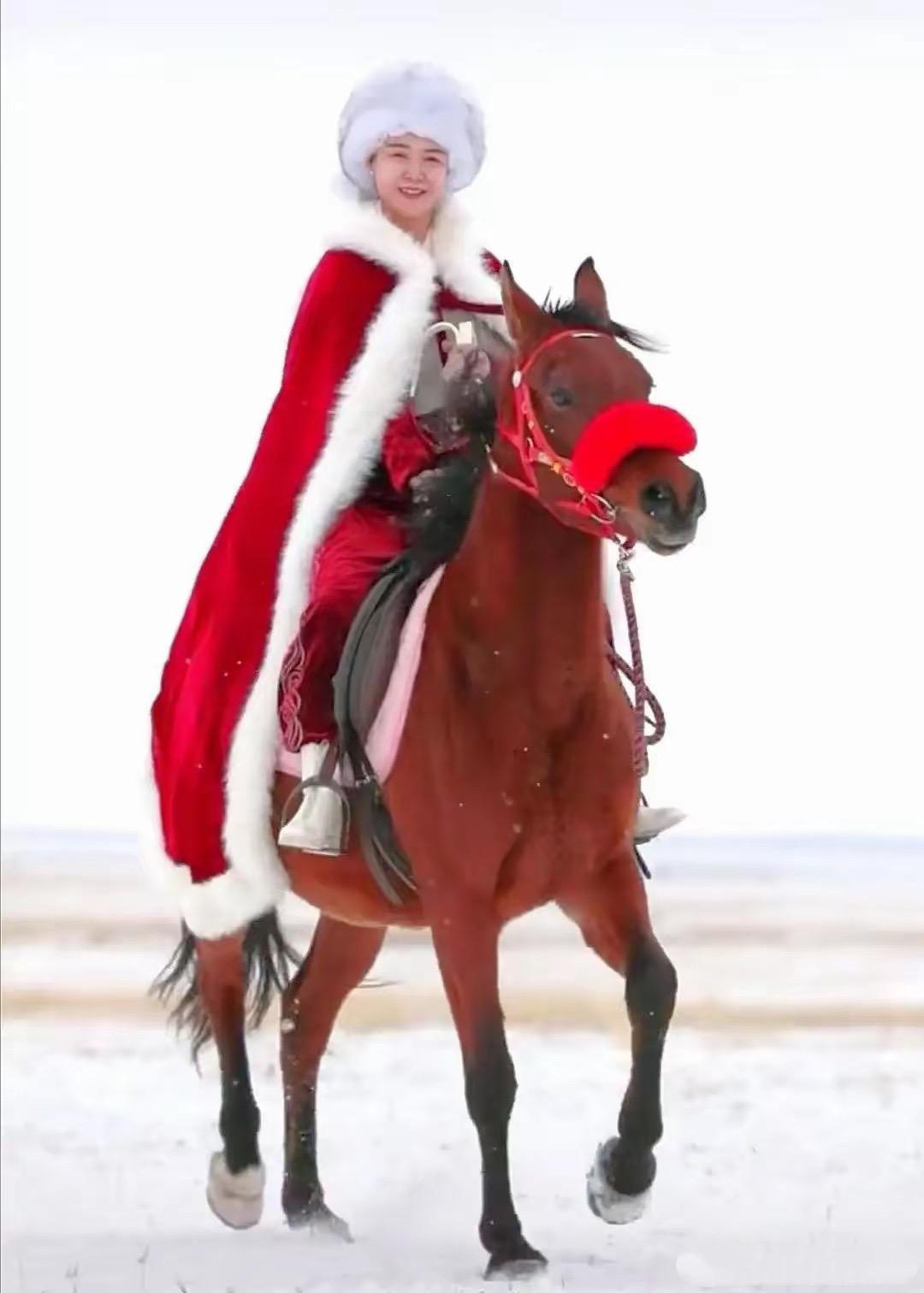 2020年還在任職新疆昭蘇縣副縣長的時候,她穿着紅衣、披紅色斗篷,在新疆雪原策馬揚鞭,爲當地旅遊代言。