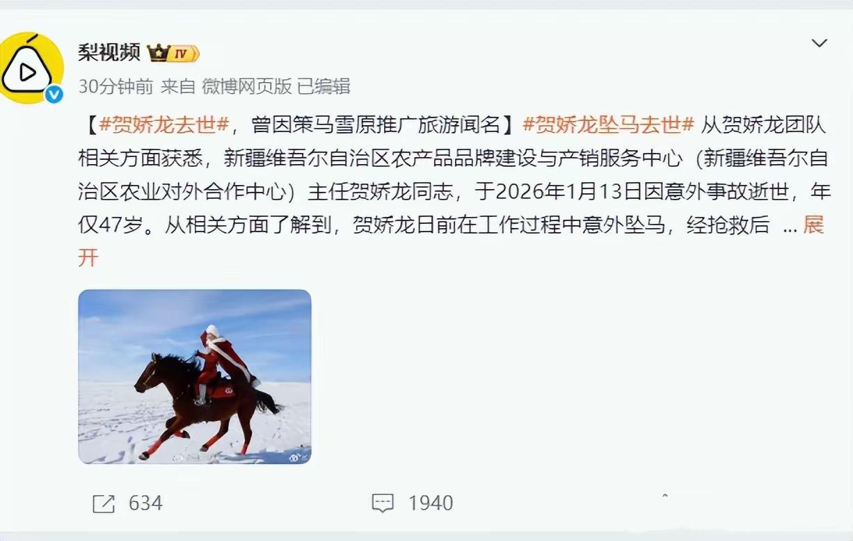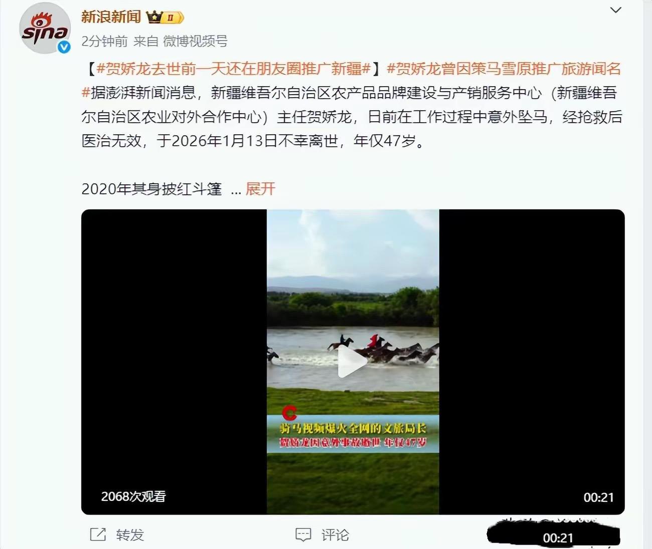 47歲的“網紅幹部”賀嬌龍,意外墜馬,搶救無效離世。
