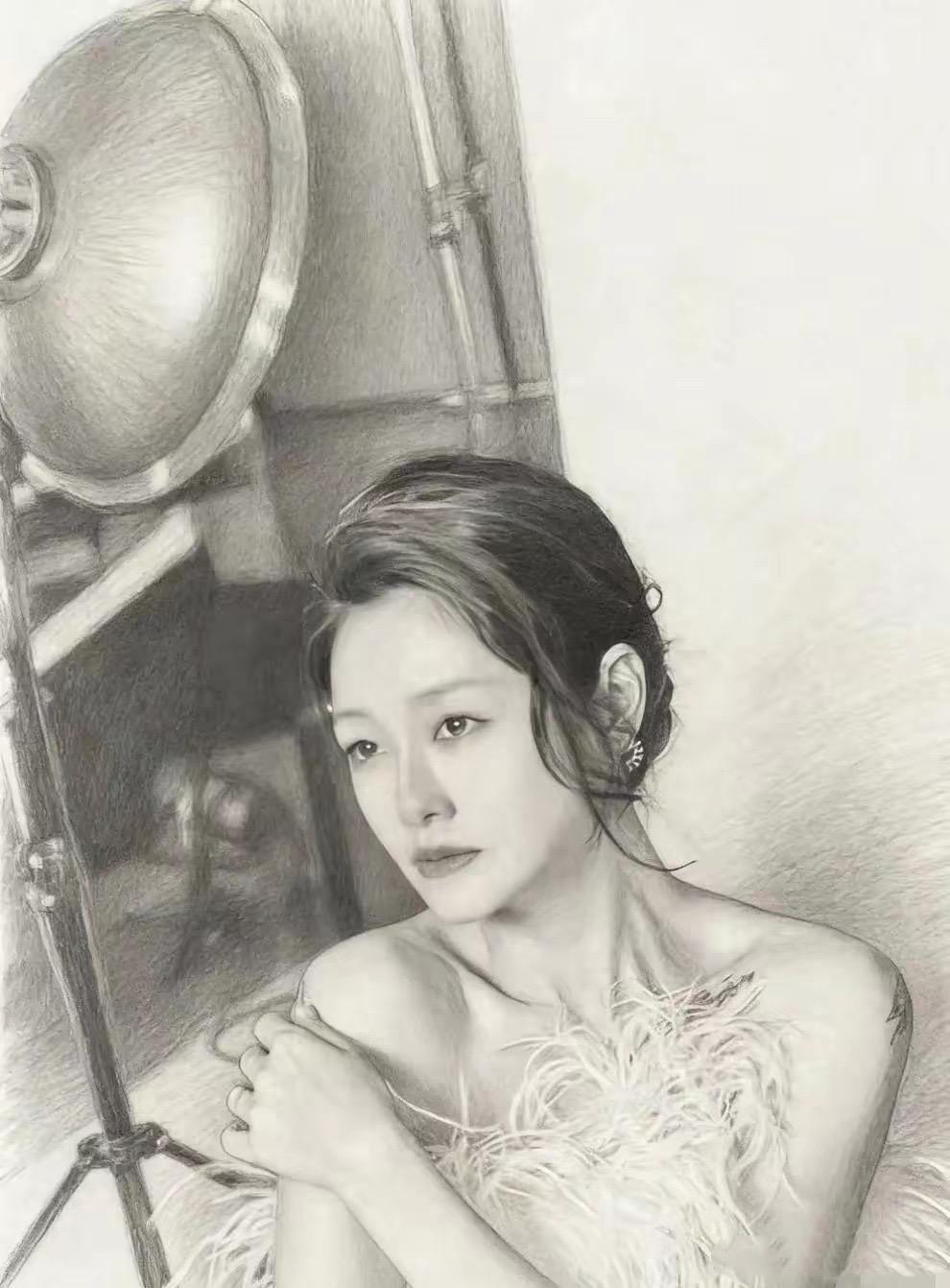 這世間,再也沒有人能畫出這麼生動的大S。她眉眼裏的小情緒,衣服上的小褶皺,甚至脖頸處淺淺的細紋,都被具俊曄復刻出來。