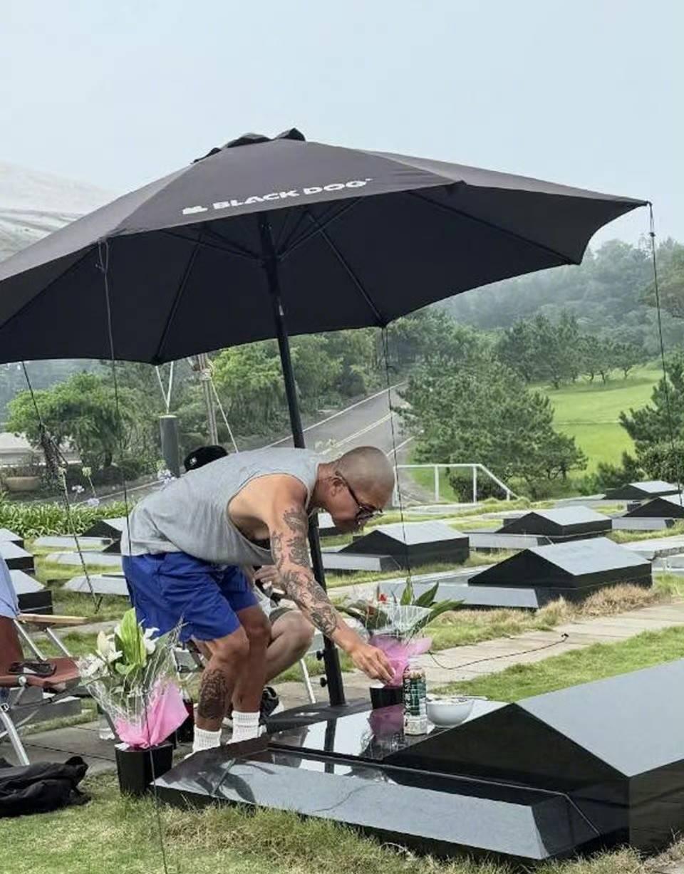 他不是在蹲下身子擦拭墓碑,就是坐在露營椅上沉思。在家裏的日子,不停的寫寫畫畫,想要用筆尖記錄大S美好的模樣。