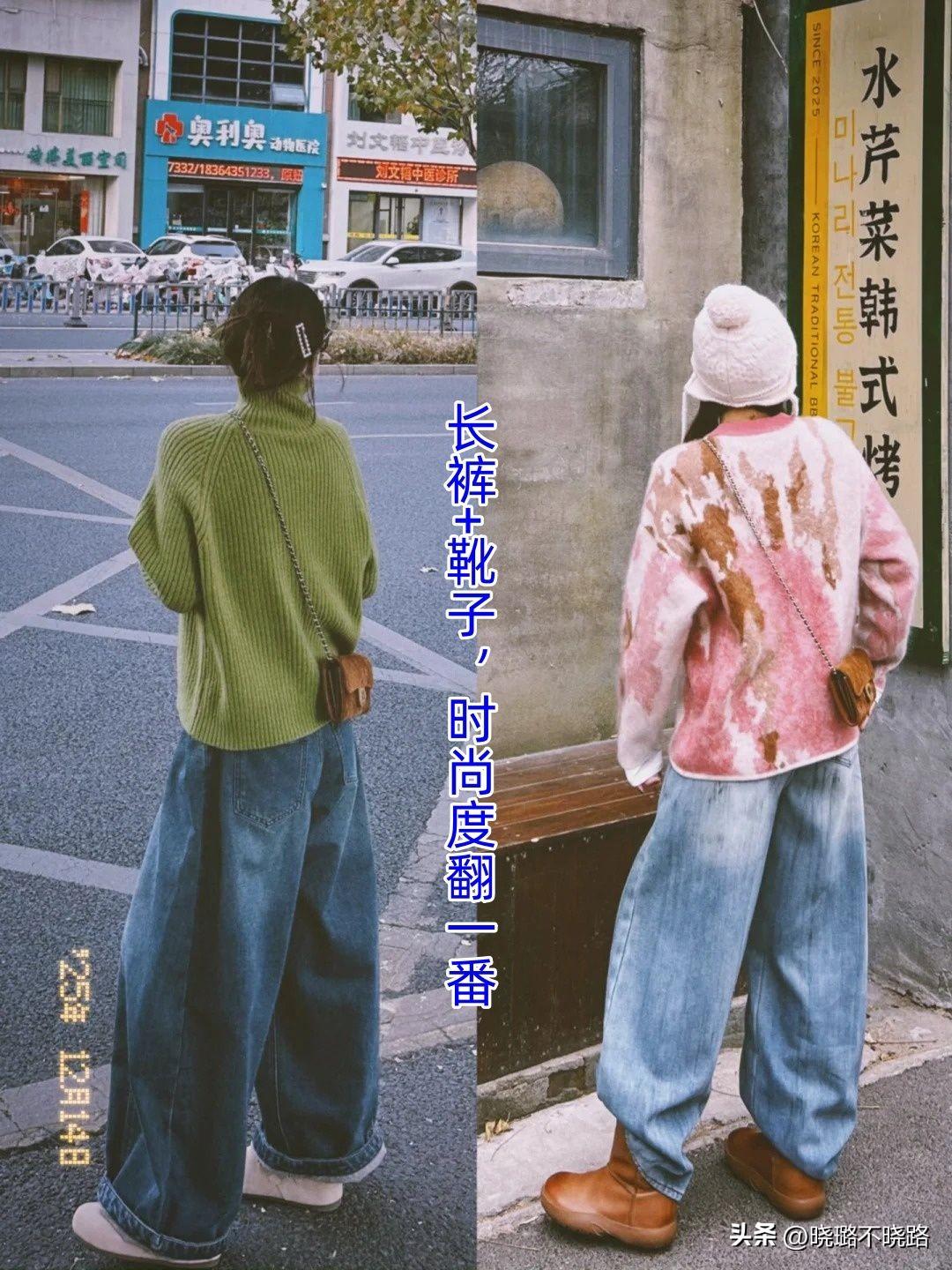 搭配雪地靴,咱們需要將褲腿放長,長到可以稍微蓋住一些靴子,如此減少靴子在造型裏的面積,大大增加下半身的存在感,這樣整個人看起來就好像有黃金比,人人都能成爲九頭身的大美女。