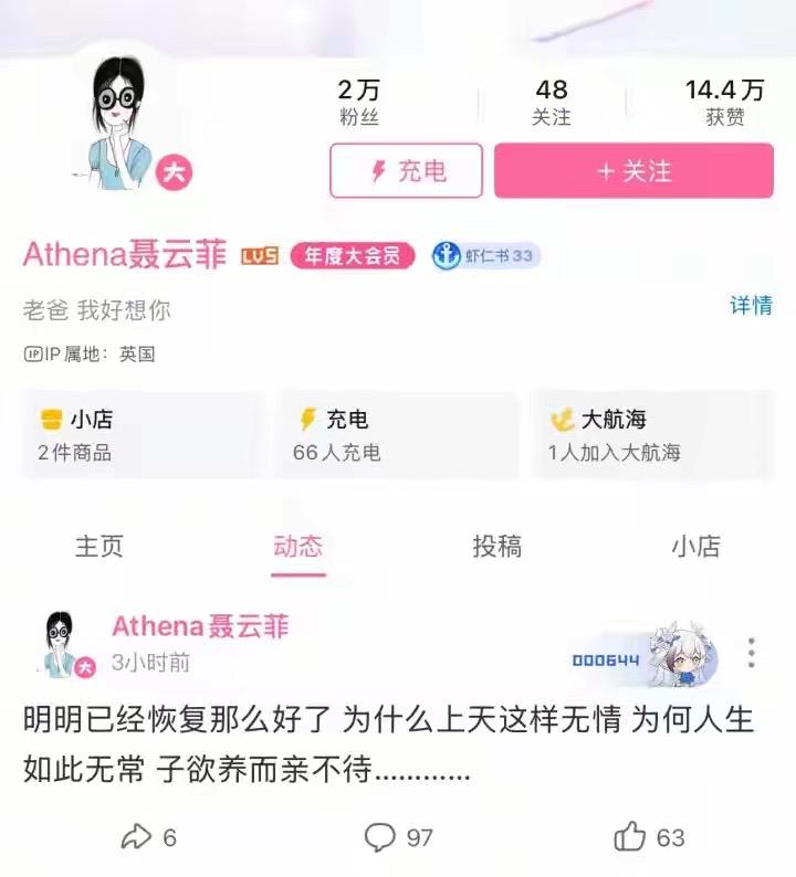 聶衛平去世後,聶雲菲發訃告。還在社交平臺發文:明明已經恢復那麼好了,爲什麼上天這樣無情?爲何人生如此無常,子欲養而親不待……
