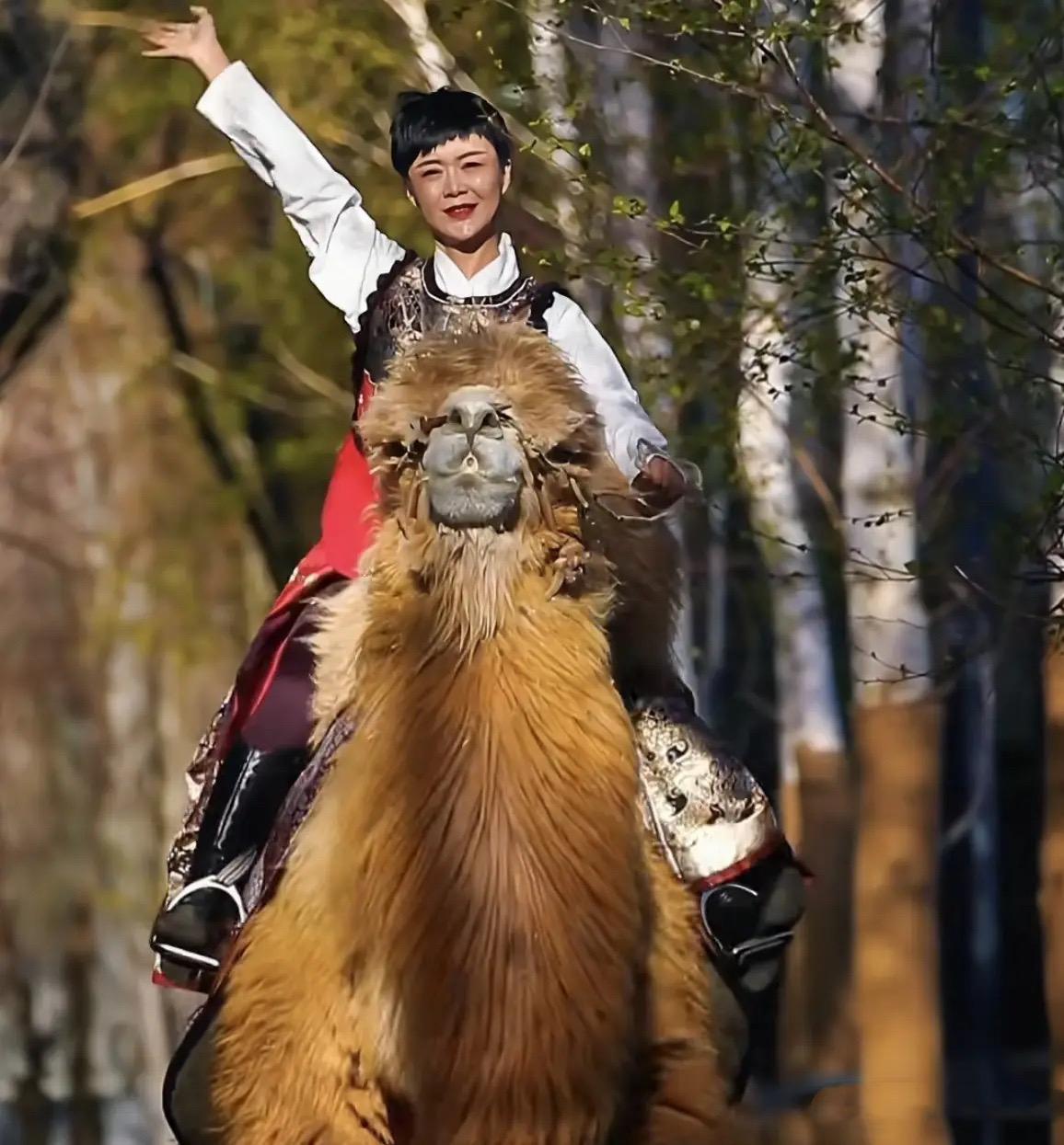 在這匹馬上,賀嬌龍拍了很多英姿颯爽的視頻。不管是紅衣策馬、還是穿着馬面裙揚鞭,那形象都是不可複製的。