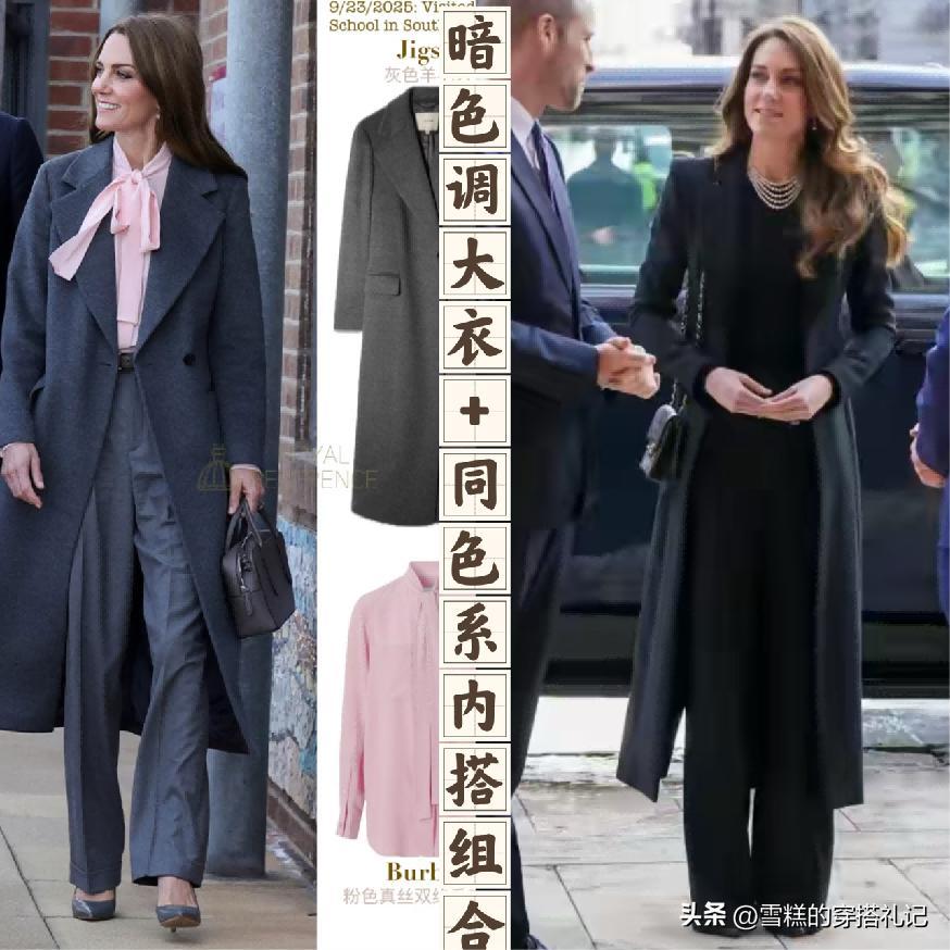 暗色系列,尤其是長款的單品在搭配起來的時候,對於女性來說是很能夠完美的,將膏劑又沉穩得體的氣質狀態給彰顯的,那麼在這個時候對於凱特王妃而言,就會選擇與其同色系列的闊腿褲都是屬於暗色調的,搭配又顯瘦又能夠優化整體氣質的穩定度,體現出來的效果也是利落幹練,寬鬆的設計搭配也能夠體現一定的舒適感。