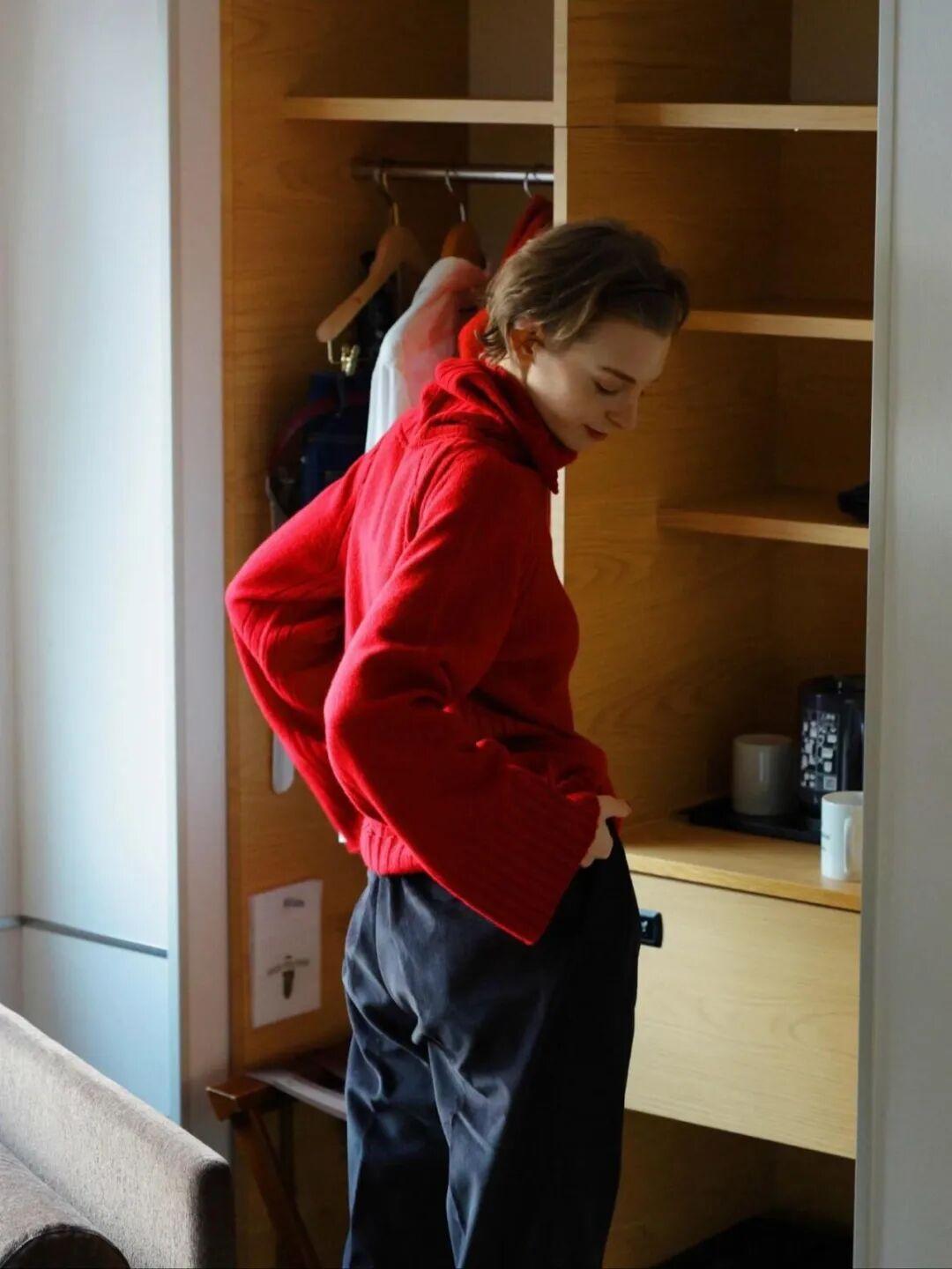 如果不想穿正紅色,可以試試更日常的酒紅色,它的飽和度低一些、明度也更柔和,對亞洲膚色特別友好,顯白、提氣色,駕馭起來沒有任何壓力~▼