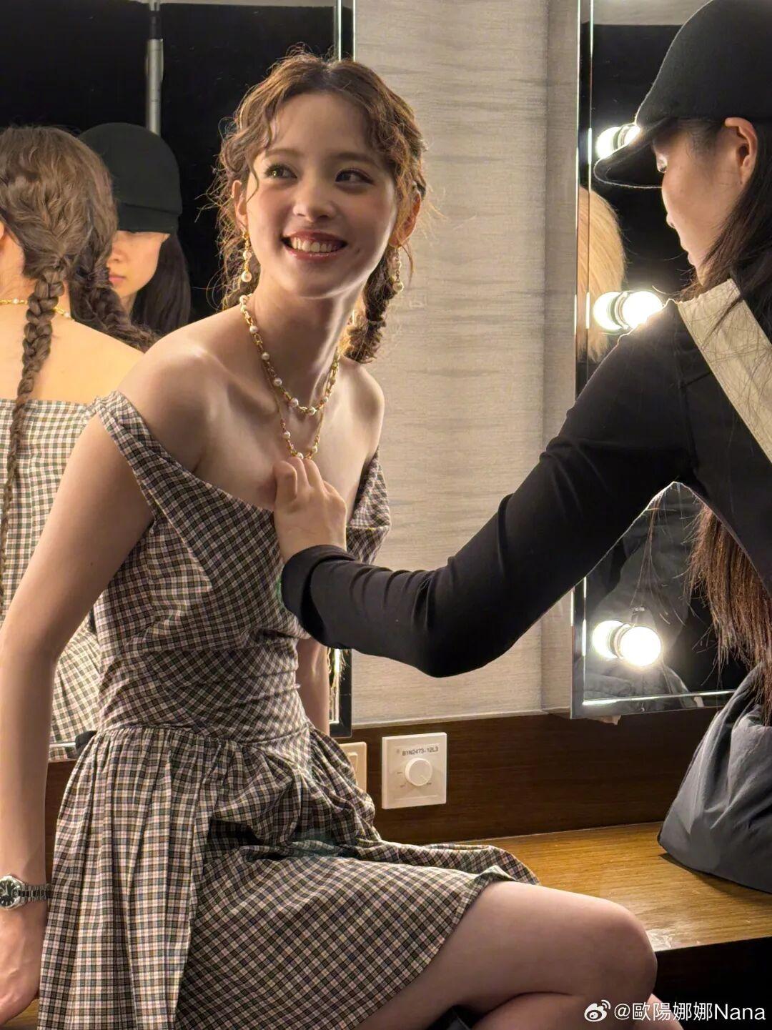 同時突出纖細的腿部,這樣既放大了優勢,又優化了比例,讓161cm的她看起來格外修長(雖然和周柯宇站一起,還是有萌萌的身高差)。▼