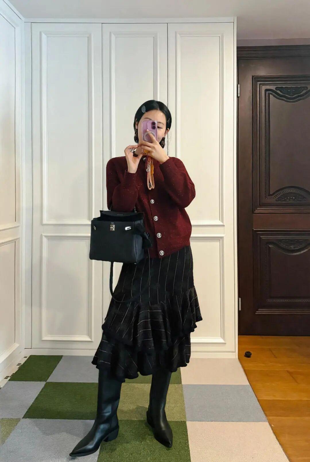 紅色系永遠是新年不出錯的選擇,尤其是酒紅/勃艮第紅,顯白又有節日氛圍感。▼