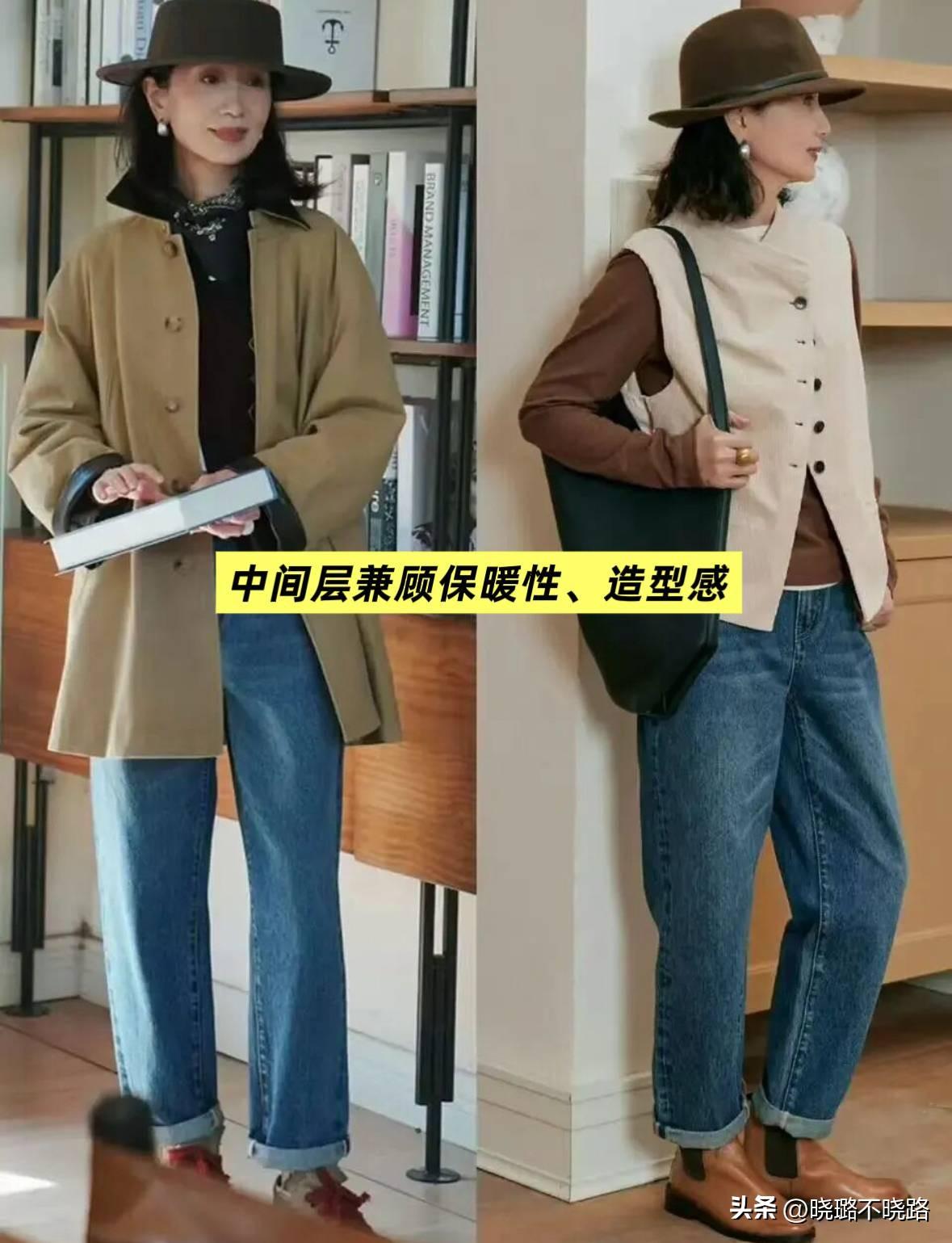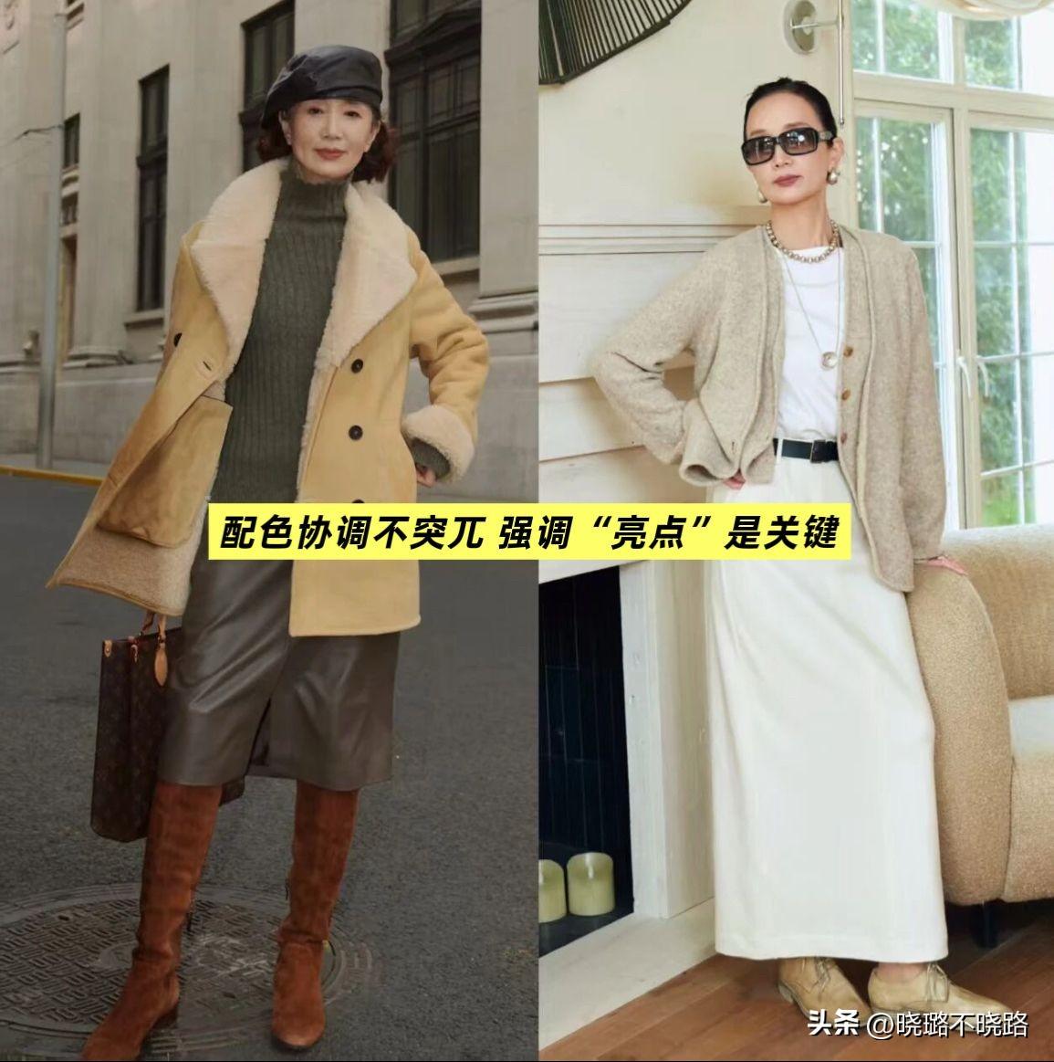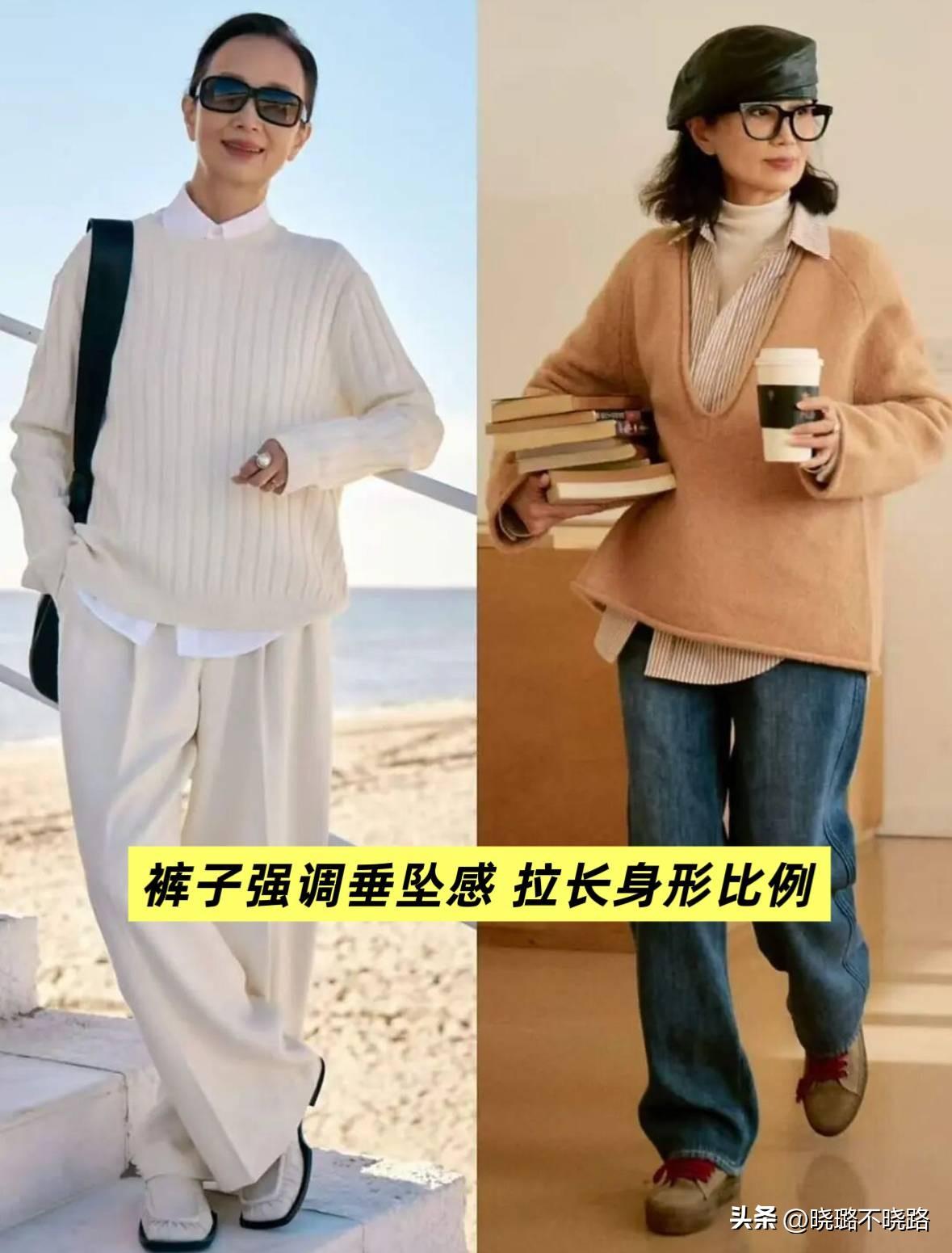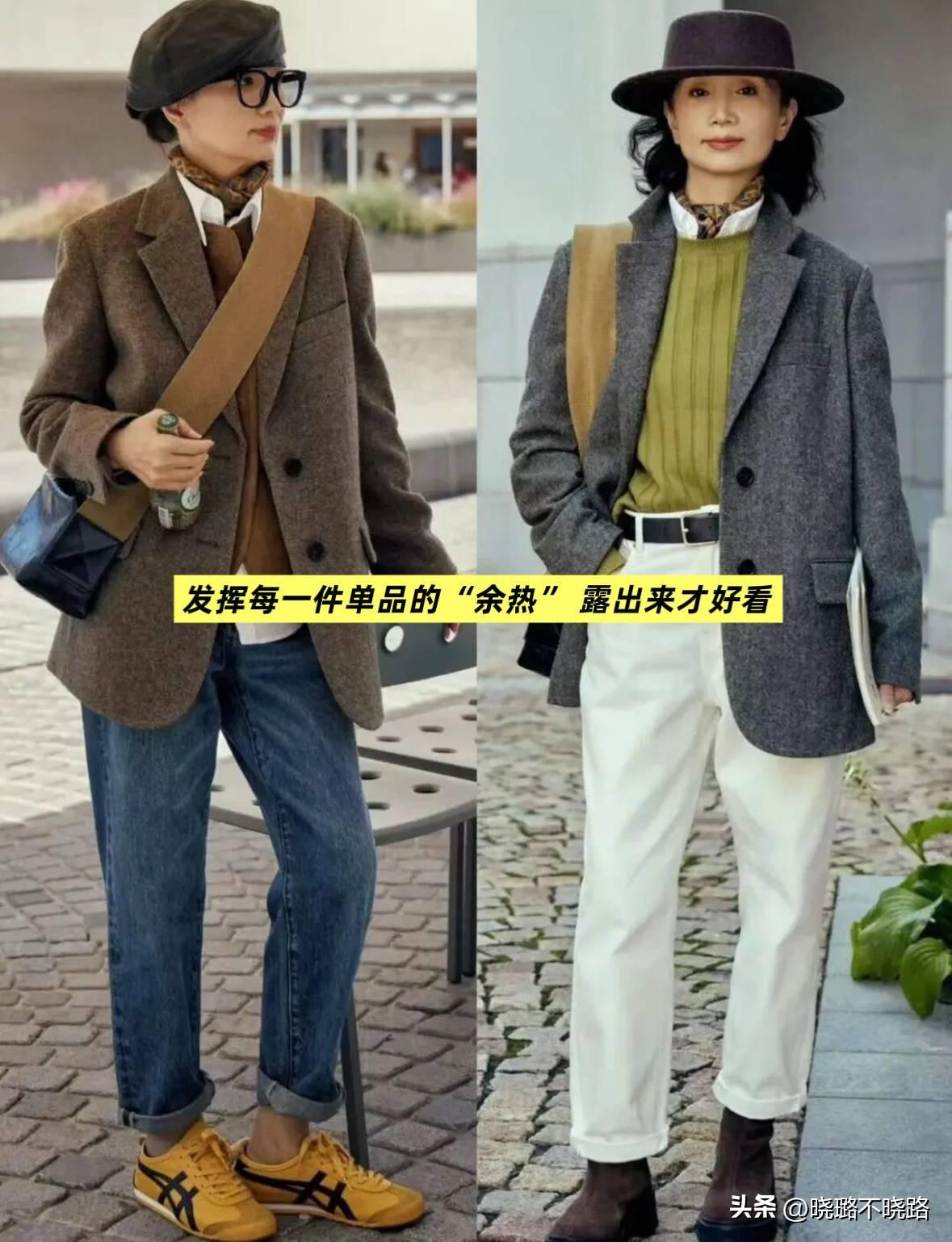 中間層的單品挑選非常豐富,不用侷限於毛衣和衛衣,對於60多歲的女人來說,選擇挺闊一點的風衣、西裝、馬甲,反而能夠更好的修飾身形,領子儘量大一點,穿在身上更加靈活。