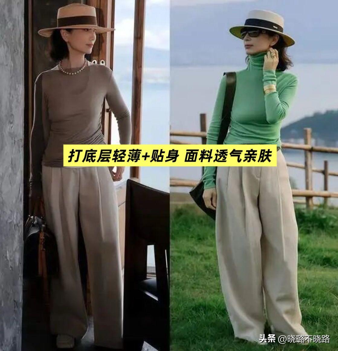 打底層的版型要“修而不緊”,領口可以選擇圓領、半高領或者小V領,顏色儘量以純色爲主,適配度更高,而且還不會搶風頭,疊穿在冬裝裏面,還能削弱臃腫感。