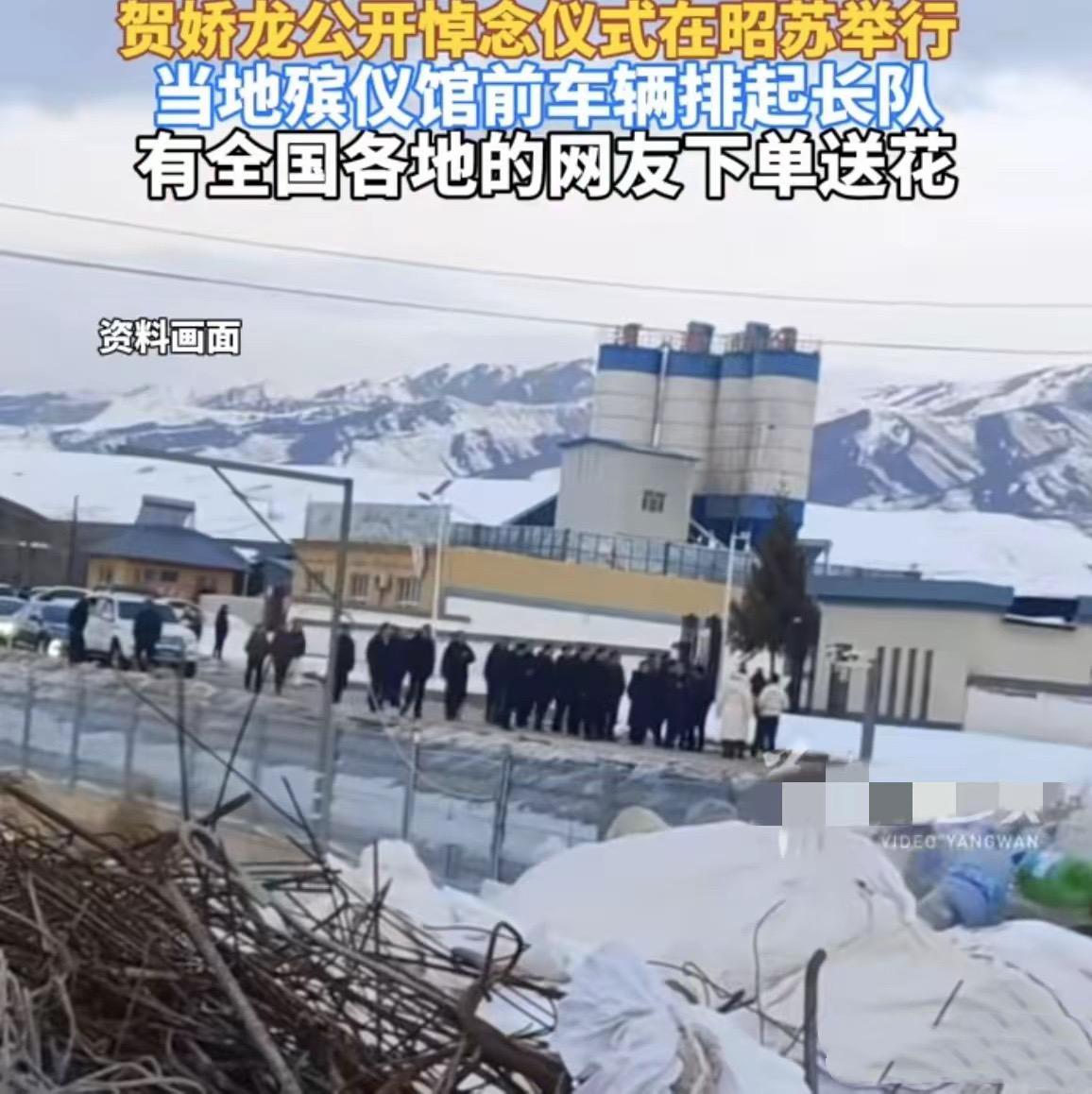 大半個月都是晴天的伊犁,突然就下起了雪,像是天空跟着哭泣,一起送賀嬌龍最後一程。寒冷的天氣,並沒有阻擋網友的熱情,大家穿着黑色或白色的棉衣,就這麼安靜的等着。