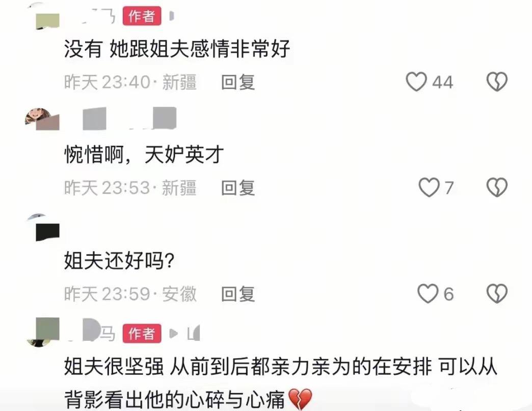 賀嬌龍好友曝她和丈夫感情非常好,她的告別儀式從前到後都是丈夫親力親爲的在安排。從賀嬌龍丈夫的身影裏,就能看出他的心碎和心疼。