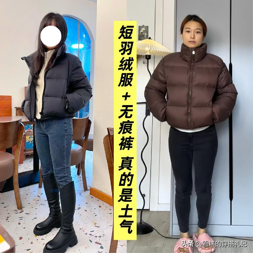 在今年的冬季,短款的羽絨服真的是非常的盛行,雖然搭配起來的時候會比常規或者是長款的羽絨服體現的更爲時髦,但其實對於身形的要求也是比較高的,尤其是你下半部分的褲裝還選擇的緊身無痕褲,這樣的搭配就導致最終所展現出來的效果又顯胖,又暴露身材的不足又土氣。