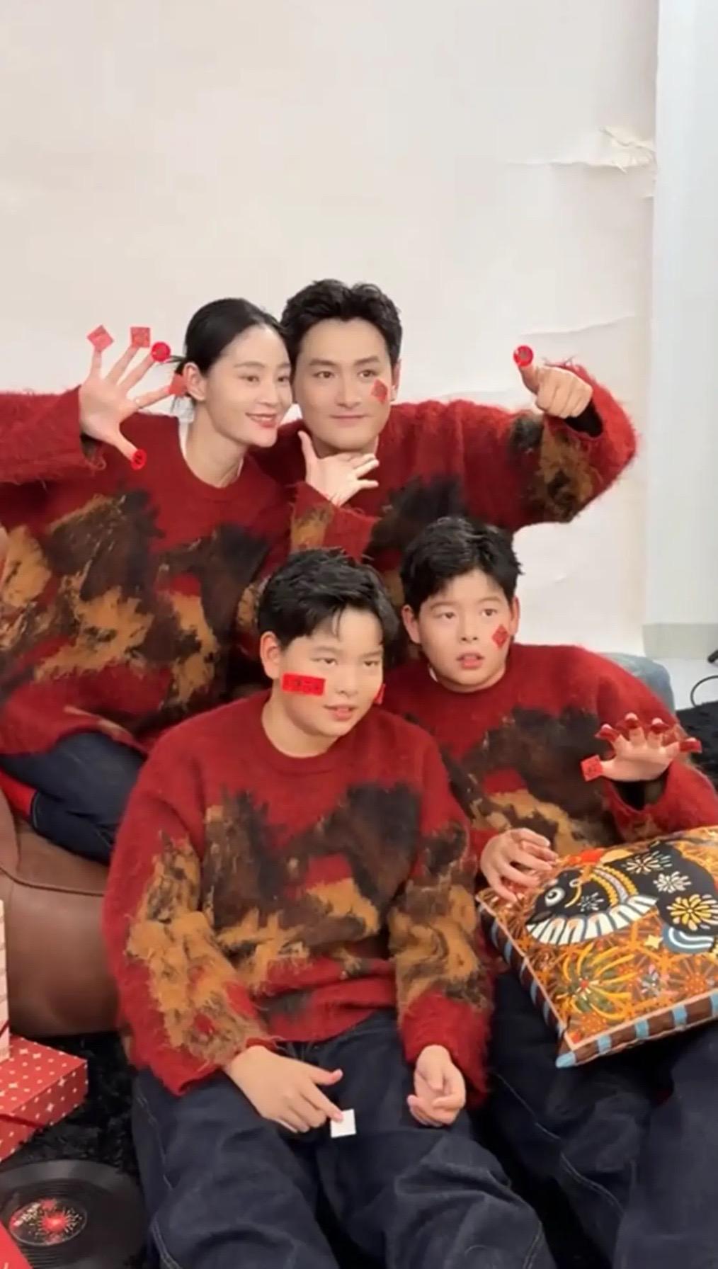 41歲王媛可曬全家福,帥老公王雨出鏡,倆兒子一模一樣太像爸爸!