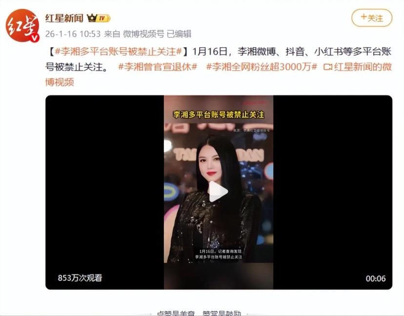 1月16日,李湘多平臺賬號被禁止關注。網友們更像是嗅到了什麼消息,紛紛展開自己的想象,發表看法。