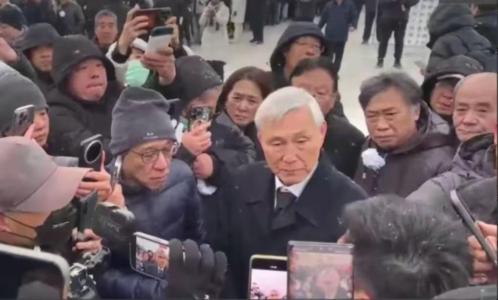 聶老告別儀式上,他的3個子女都現身了。長子穿黑衣抱着遺像,次子跟在一旁眉頭緊皺,女兒走在另一側。