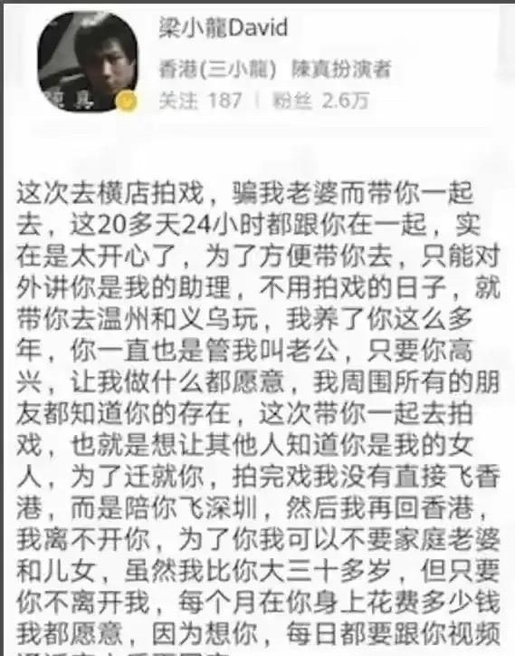 其實梁小龍也犯過錯誤,因爲婚內出軌在網上公開發佈道歉信,稱自己騙了妻子。