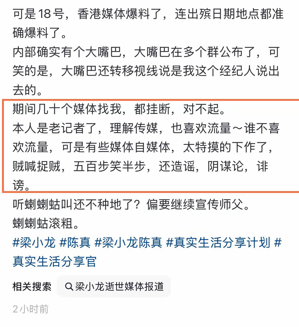 沒想到,這個消息還是在18號被香港媒體爆料了。他們甚至準確的知道出殯日期和地點,經紀人表示內部確實有大嘴巴,大嘴巴在多個羣公佈了。