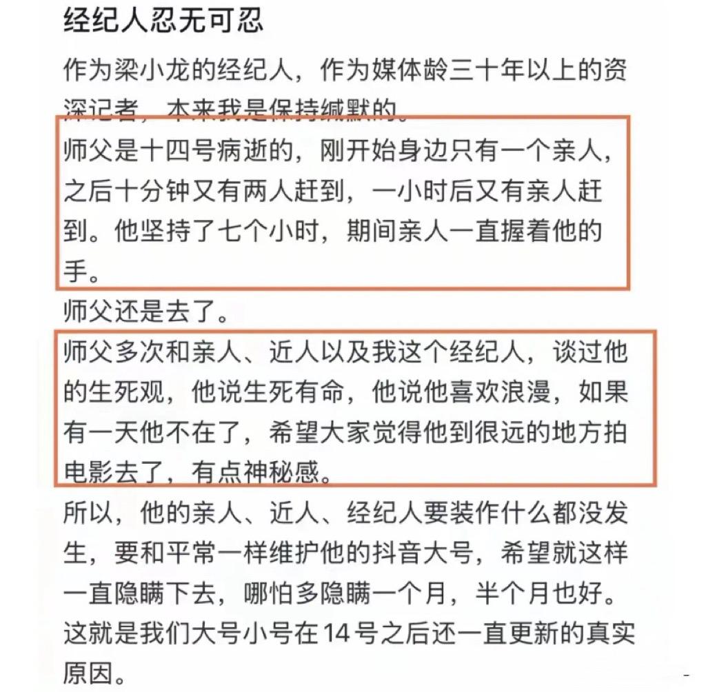 可梁小龍去世的消息,到底是怎麼走漏的?家屬本來不想公開,就想這樣瞞下去。半個月、一個月、半年、甚至一年。