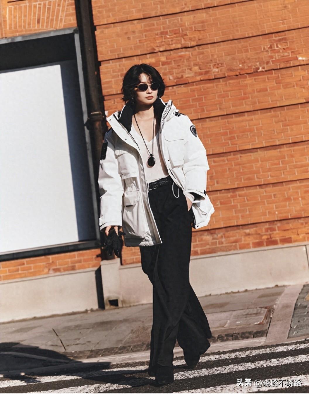 太過緊繃的冬裝,穿在身上自會適得其反,過分鬆垮,又容易有臃腫感,推薦大家可以選擇短款+H型的外套,利落不壓身高,配條高腰褲,就能穿出大長腿。
