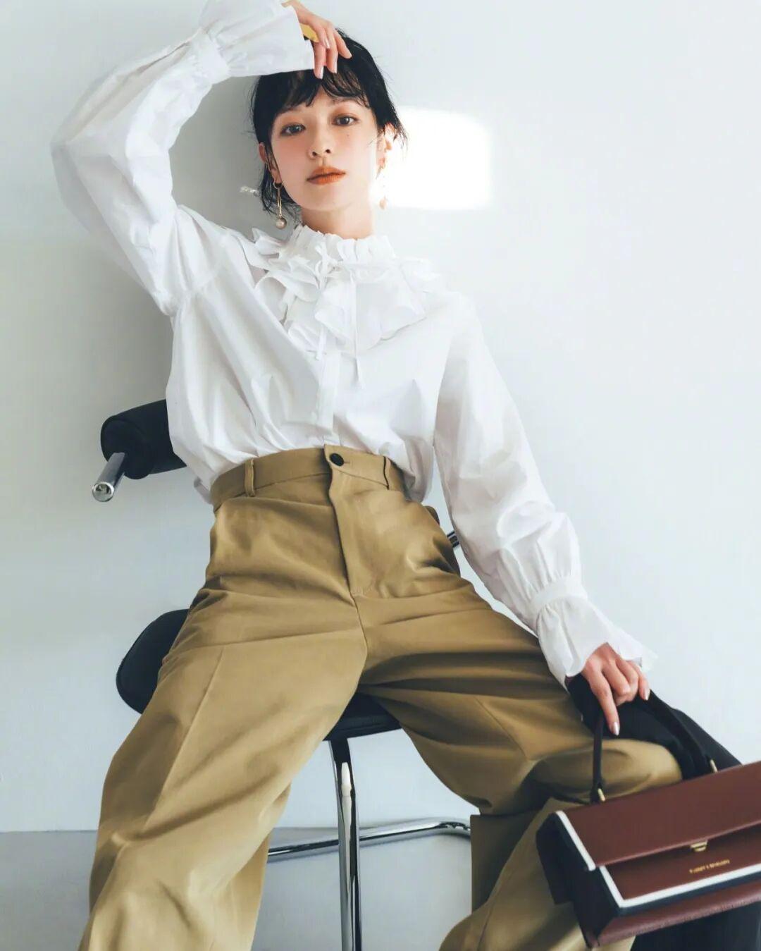 我翻了那麼多日雜圖,發現她們最擅長用這一小塊區域點亮全身。實操起來也不難,可以從最貼近臉的內搭開始。