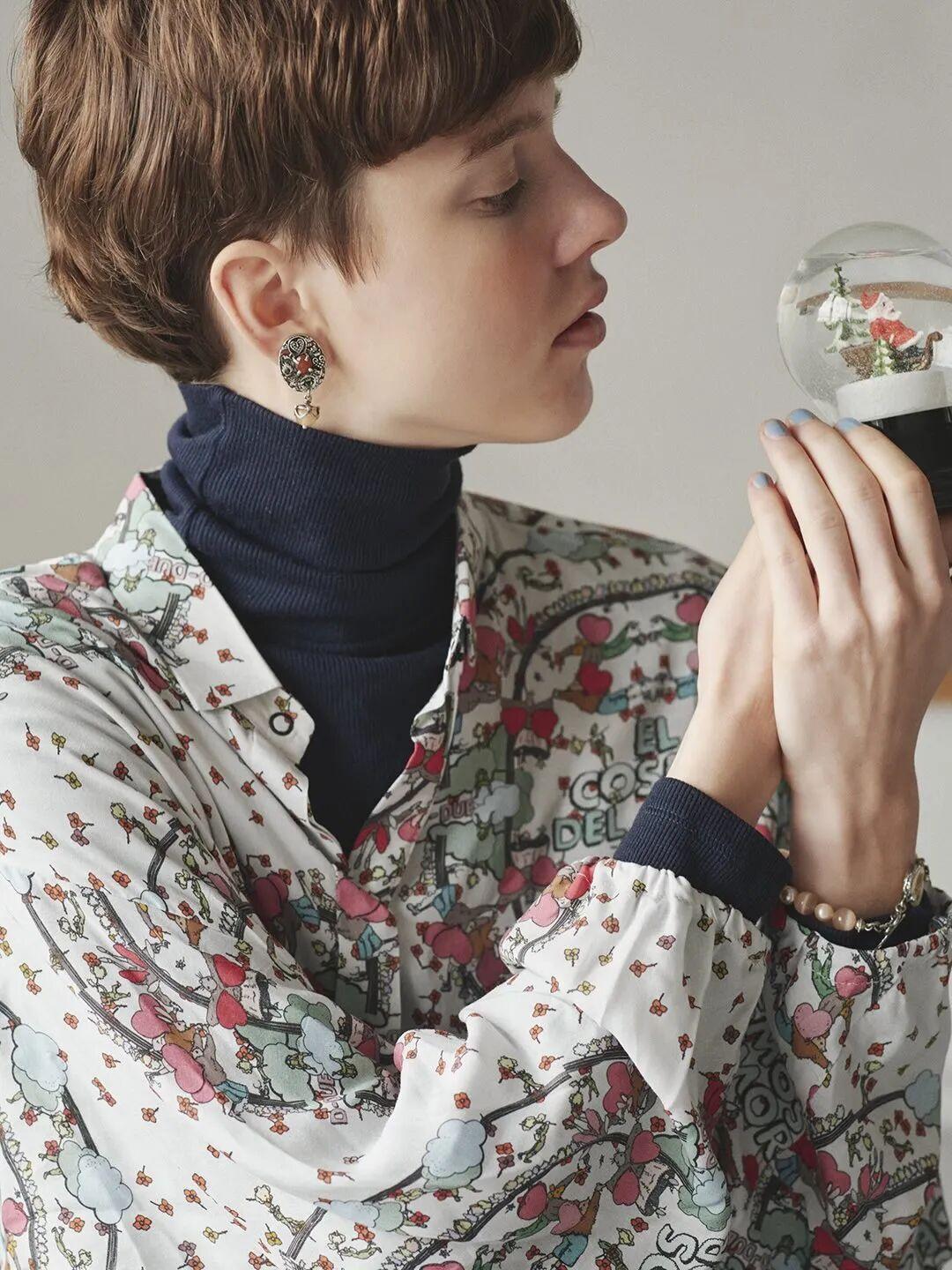 冬天包裹得嚴實,耳環就成了全身最靈動、最靠近面部的焦點。▼