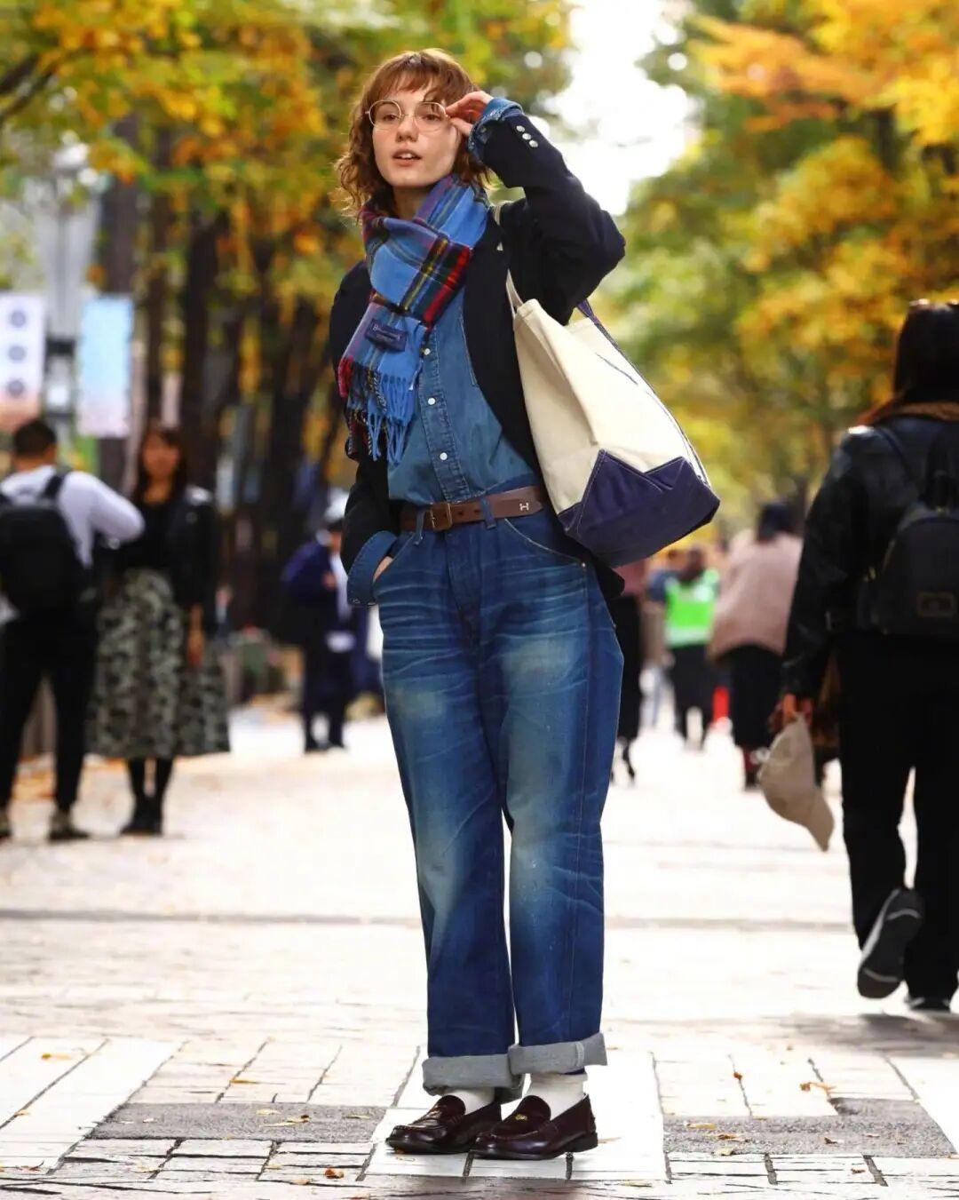 日雜還有個時髦公式:用牛仔襯衫疊穿,風格立馬鮮明。