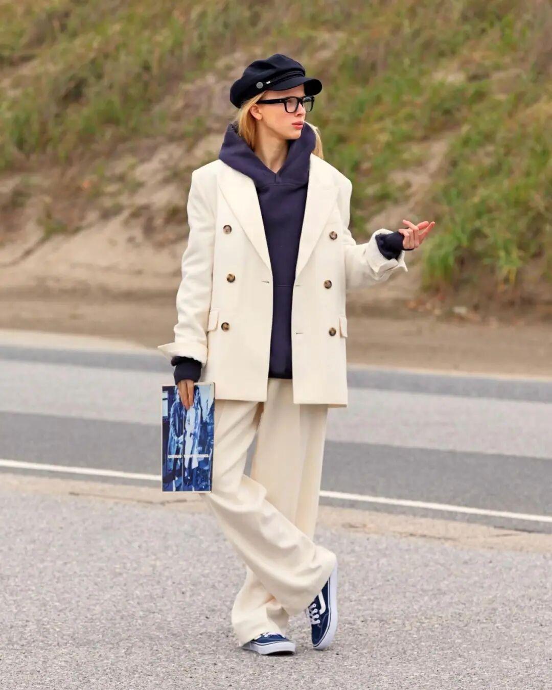 如果想打破正裝的拘束感,衛衣疊穿也是一個不錯的選擇。▼