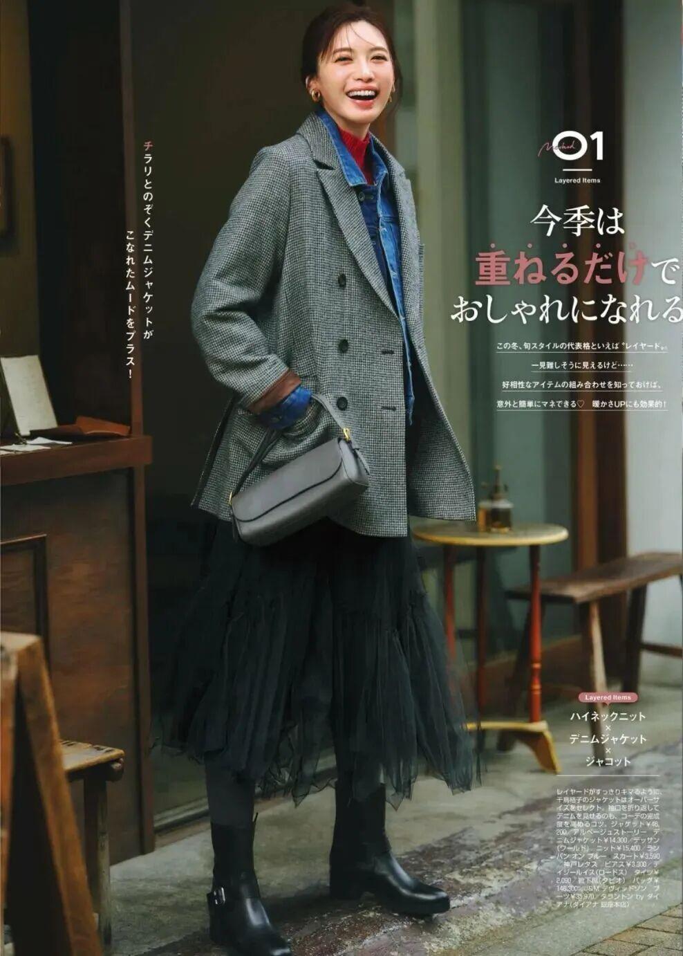 日雜的妙處在於,它提供的不是歐美雜誌“人均超模”的穿搭模板,大多數模特都是亞洲面孔,搭配思路也更接地氣。它還是少數常年在冬天用厚褲襪做搭配的雜誌。▼