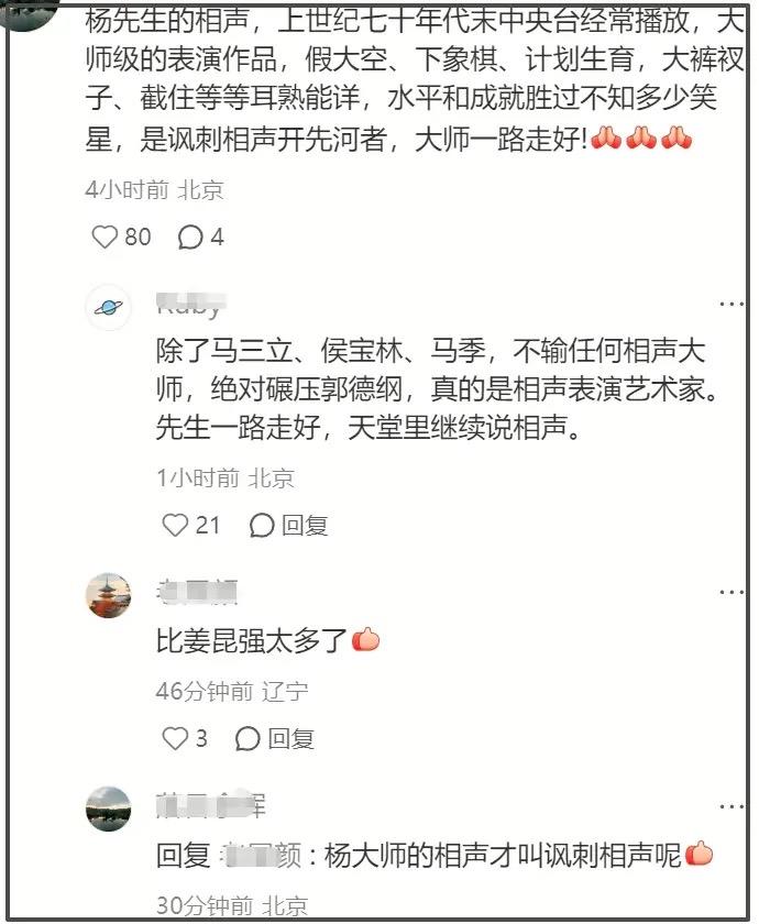 楊振華走了,此刻他應該和妻子在天堂重聚了吧。就當他到很遠很遠的地方說相聲了,希望他能把歡聲笑語帶到很遠的地方。
