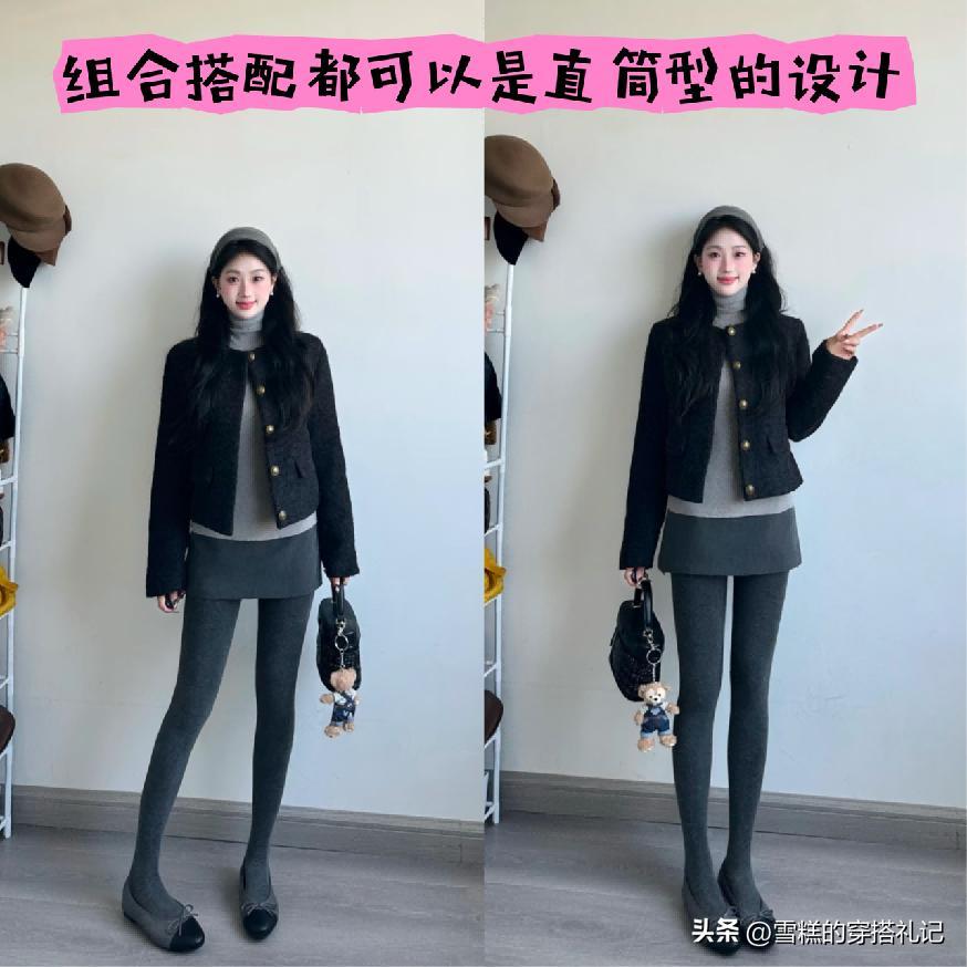但如果這個時候你所選擇的上衣單品是屬於像小香風,又或者是排骨羽絨服以及比較直筒系列的其他單品,那麼在這個時候下半部分所選擇的短裙,也最好是屬於直筒,或者是比較貼合於我們肌膚線條走向的再結合無痕褲。這樣的穿搭是能夠很明顯的將好看又顯瘦,而且利落感的是整體狀態給強調的呢。